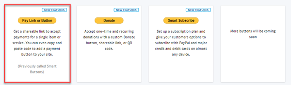 - Donate Button: To use this, your PayPal Business account must have a confirmed non-profit organization status.