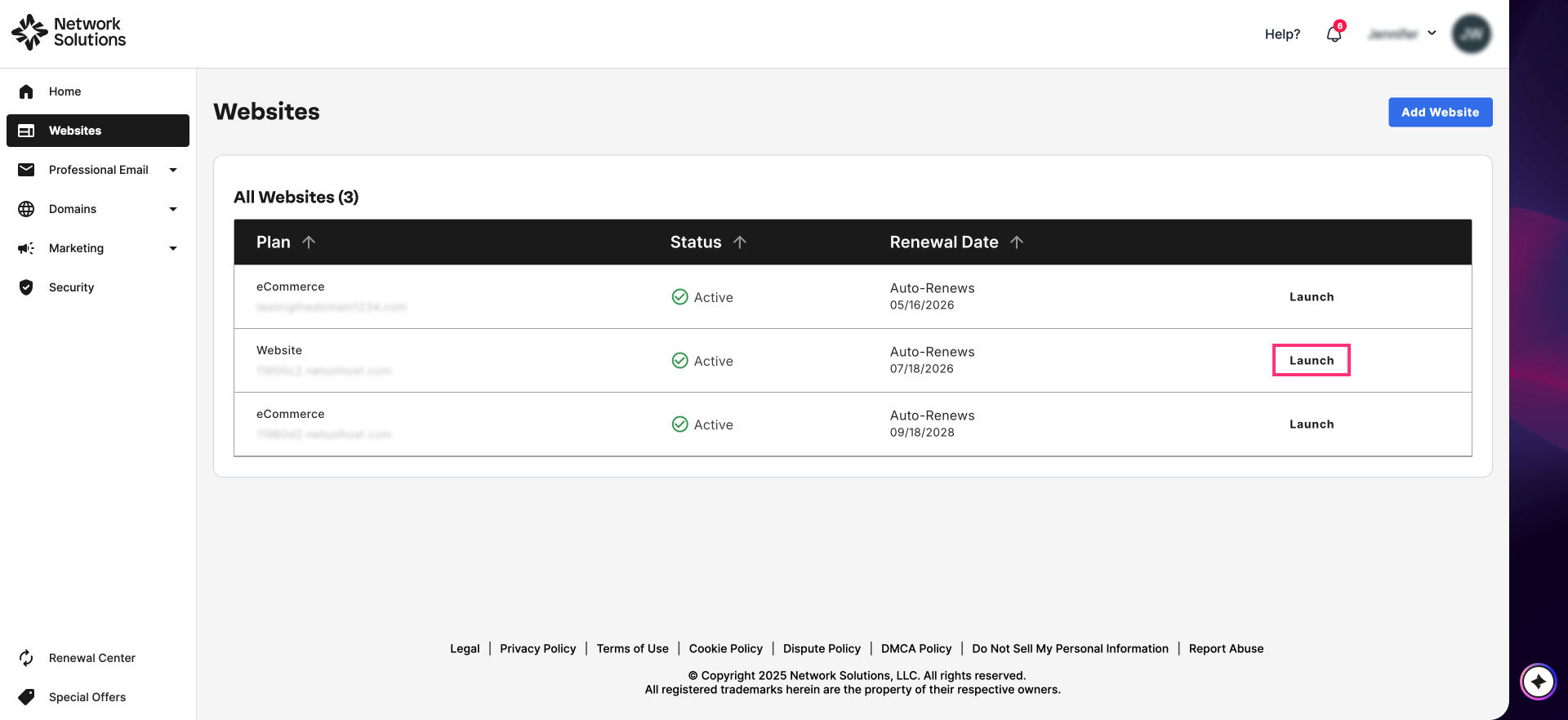 - If you have more than one Website or eCommerce, you will need to select the website you want to manage first and click Launch: