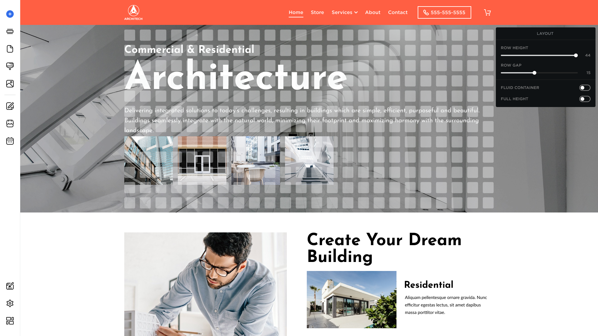Use the Layout tab to modify the section's layout. Hover over the section, click the Layout button in the top-right sidebar, and be able to: