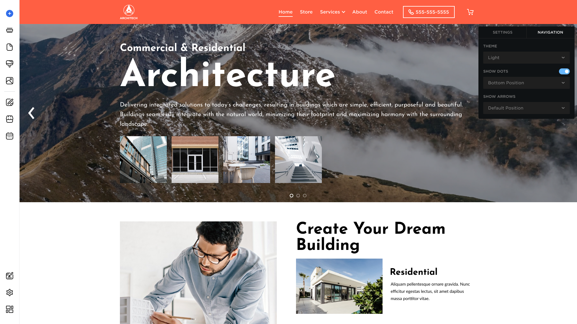 - Show Dots: Display or hide the slide indicators and set the bottom or top position.