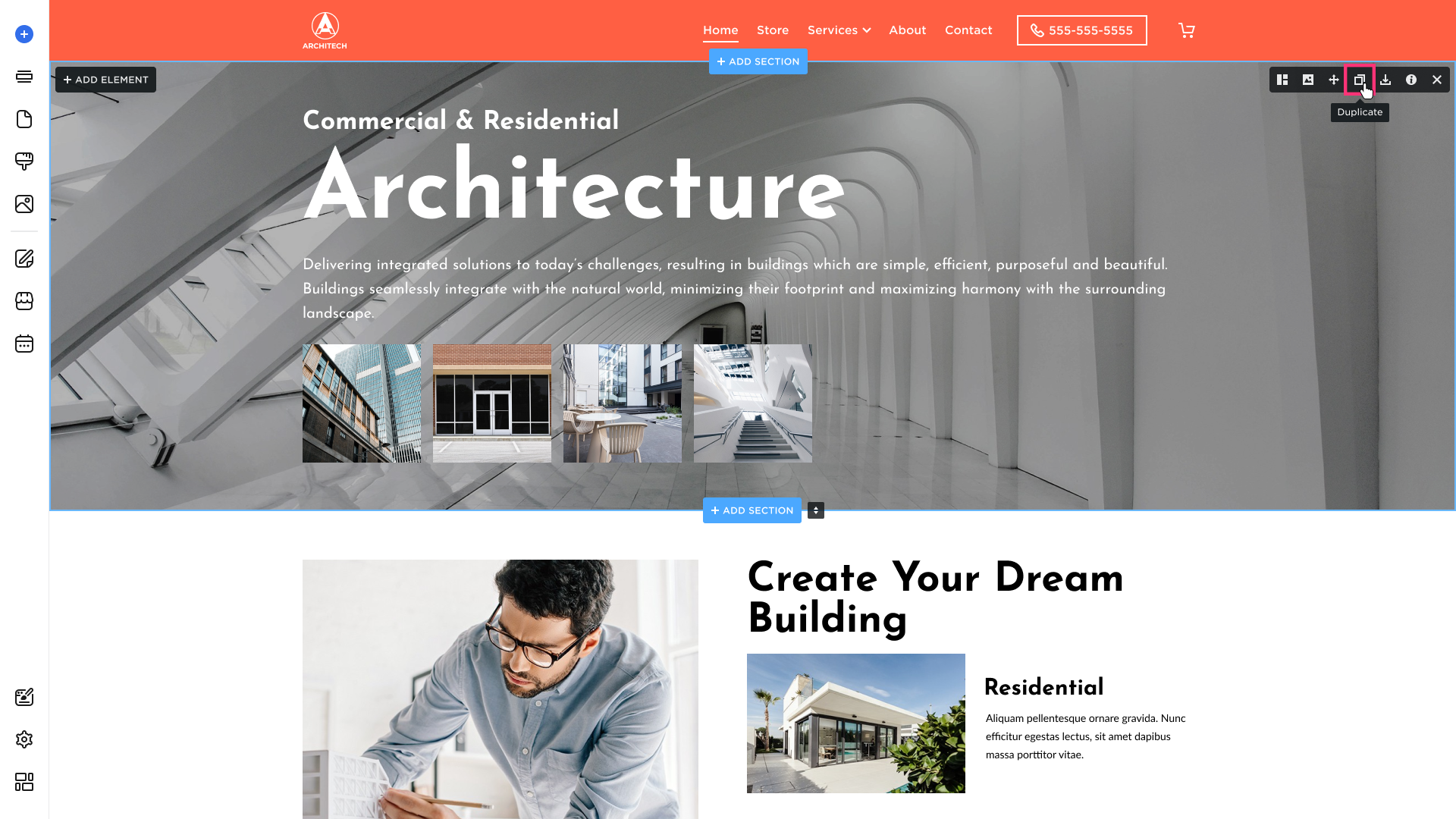 - Drag and drop the section to the desired area. You can edit and add new elements to it to suit your needs.