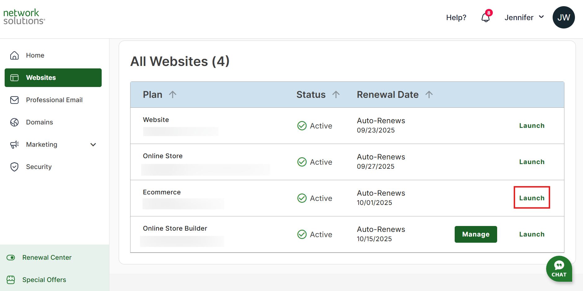 - If you have more than one eCommerce product, you will see a list of your eCommerce products. Click Launch next to the product you want to access.
