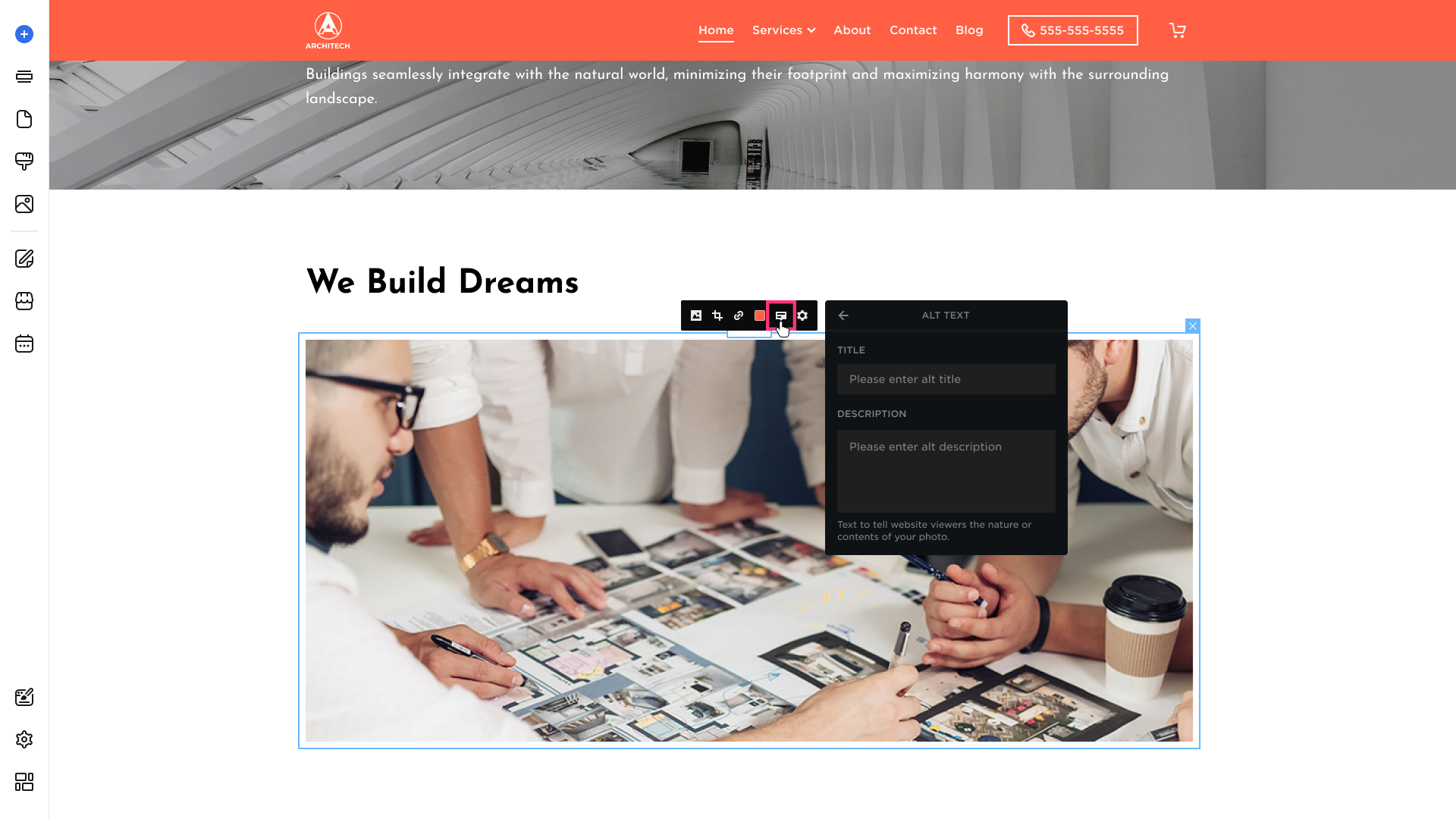 - Once inside your Website Builder, click the image you want to add an Alt Tag.
