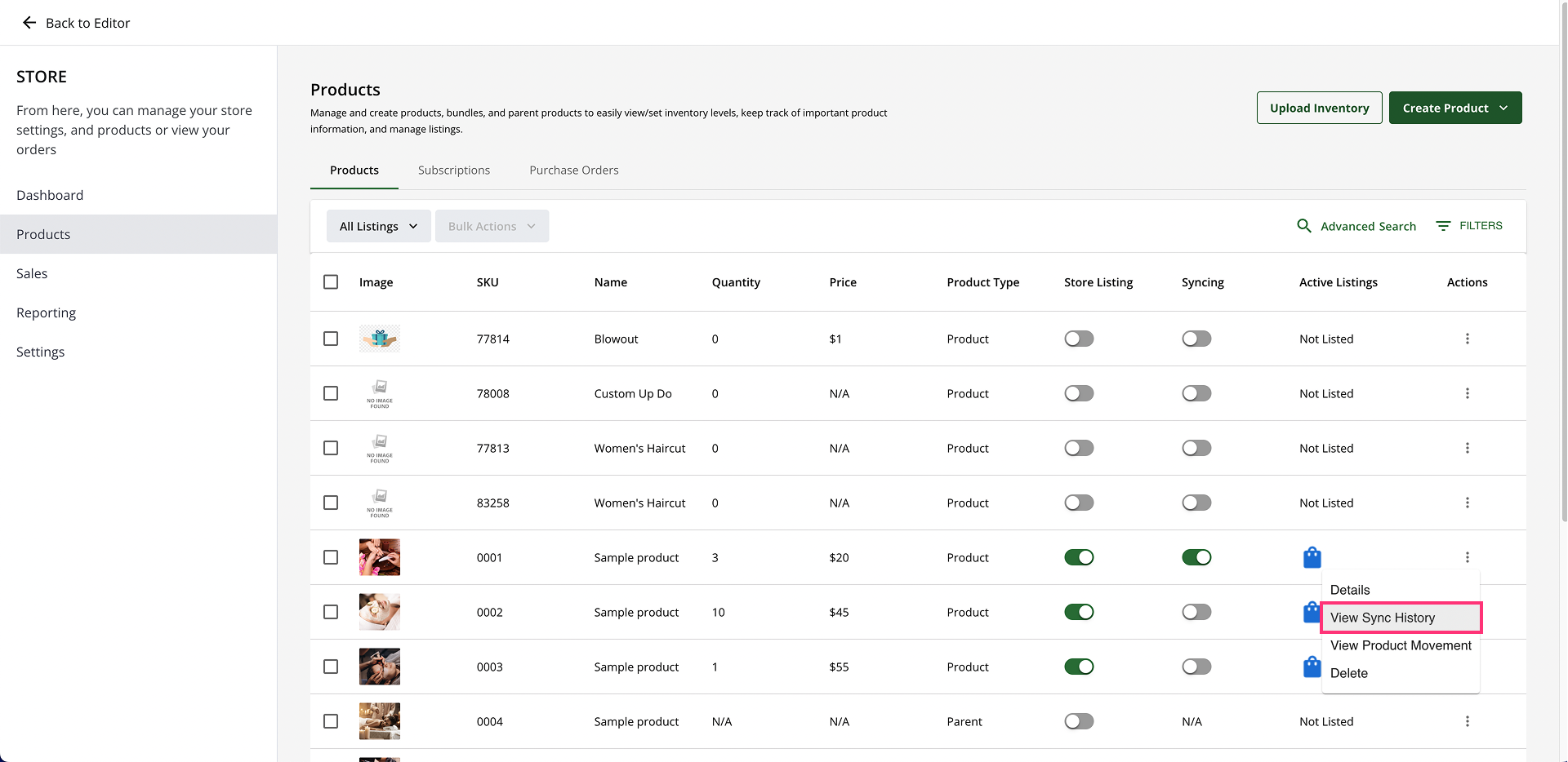 Your Online Store is the master of your inventory. Quantities are constantly being synced so you can see up-to-date information. The only way quantity is adjusted anywhere is if you update the quantity in the product details, import or upload a file, receive a purchase order, or create or import a sales order. If you would like to see the sync history of all products, follow the steps below: