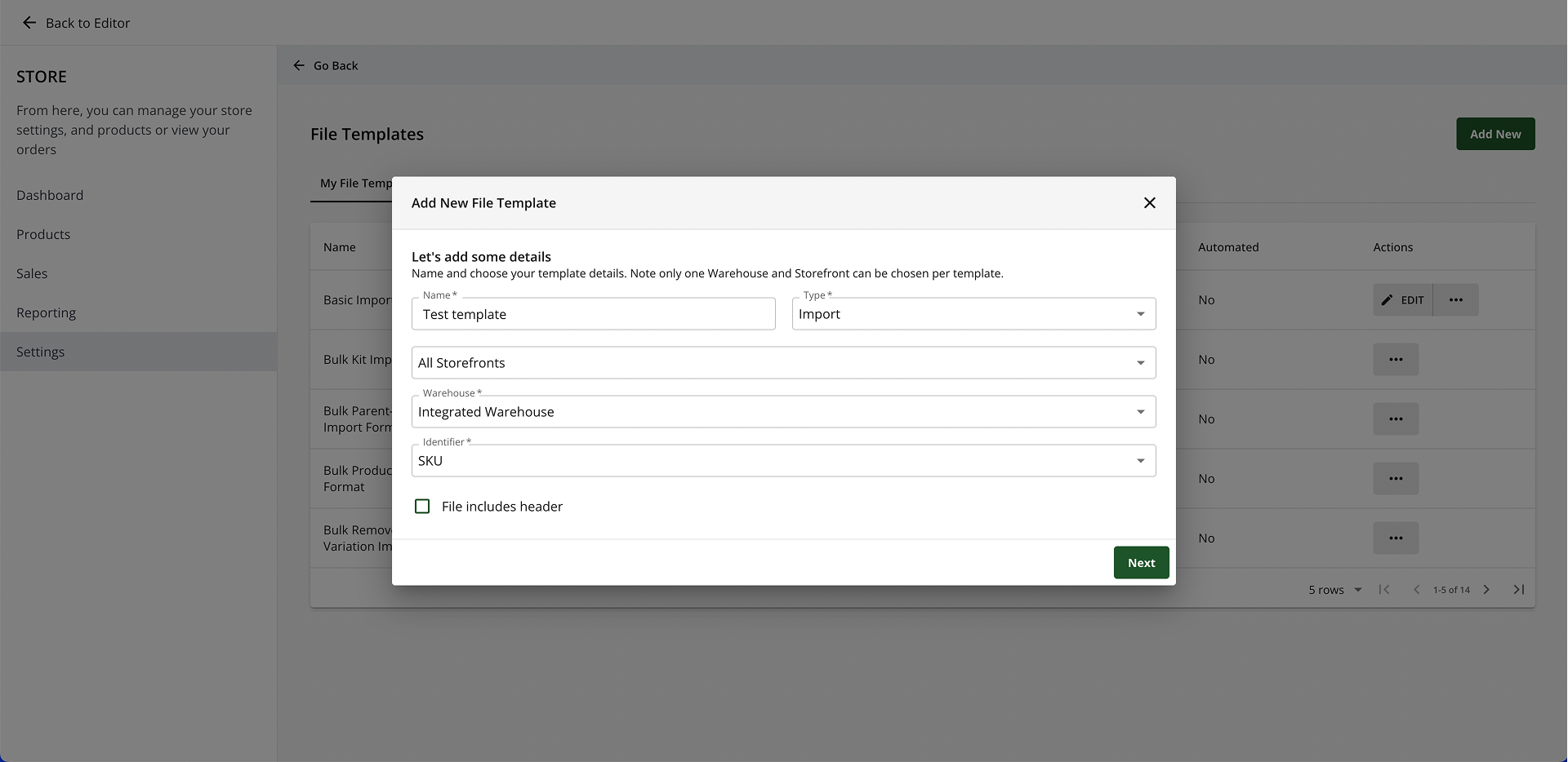 - Choose the Storefront and Warehouse from the drop-down to associate with the Template.