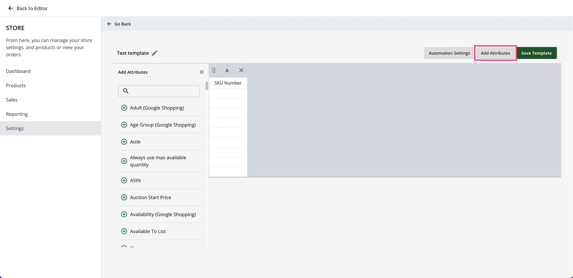 4. Click on the Add Attributes button on the top-right: