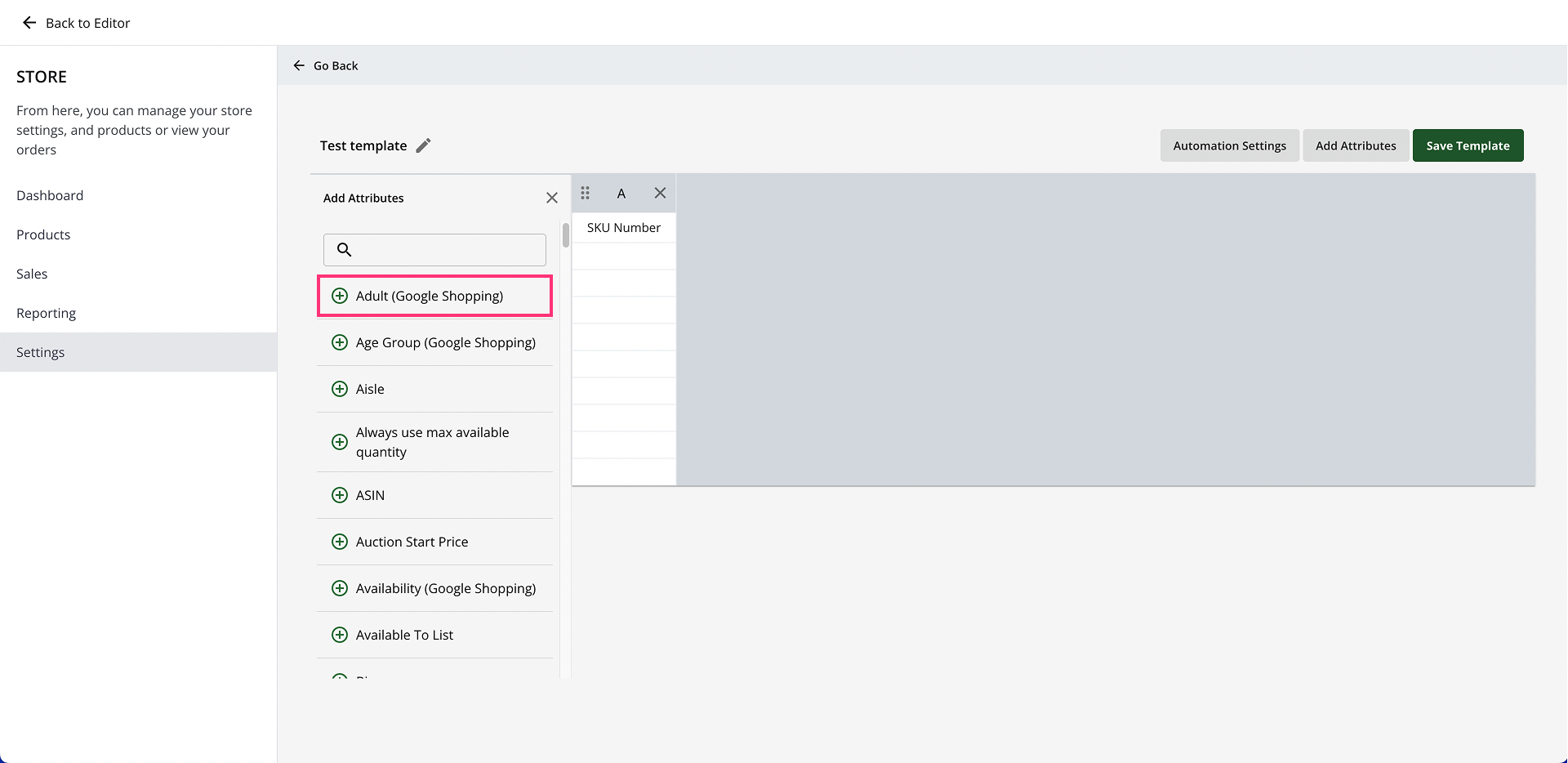 - Select the attributes you would like to add to the Inventory Template from the list: