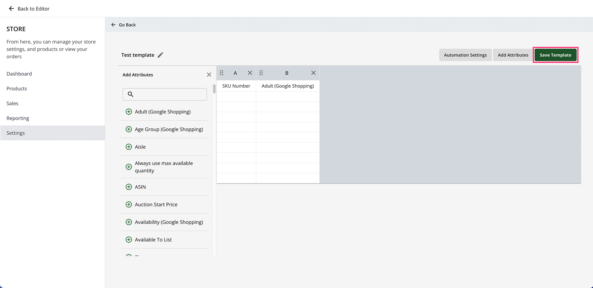 6. Drag and drop attribute columns to rearrange them in the Template: