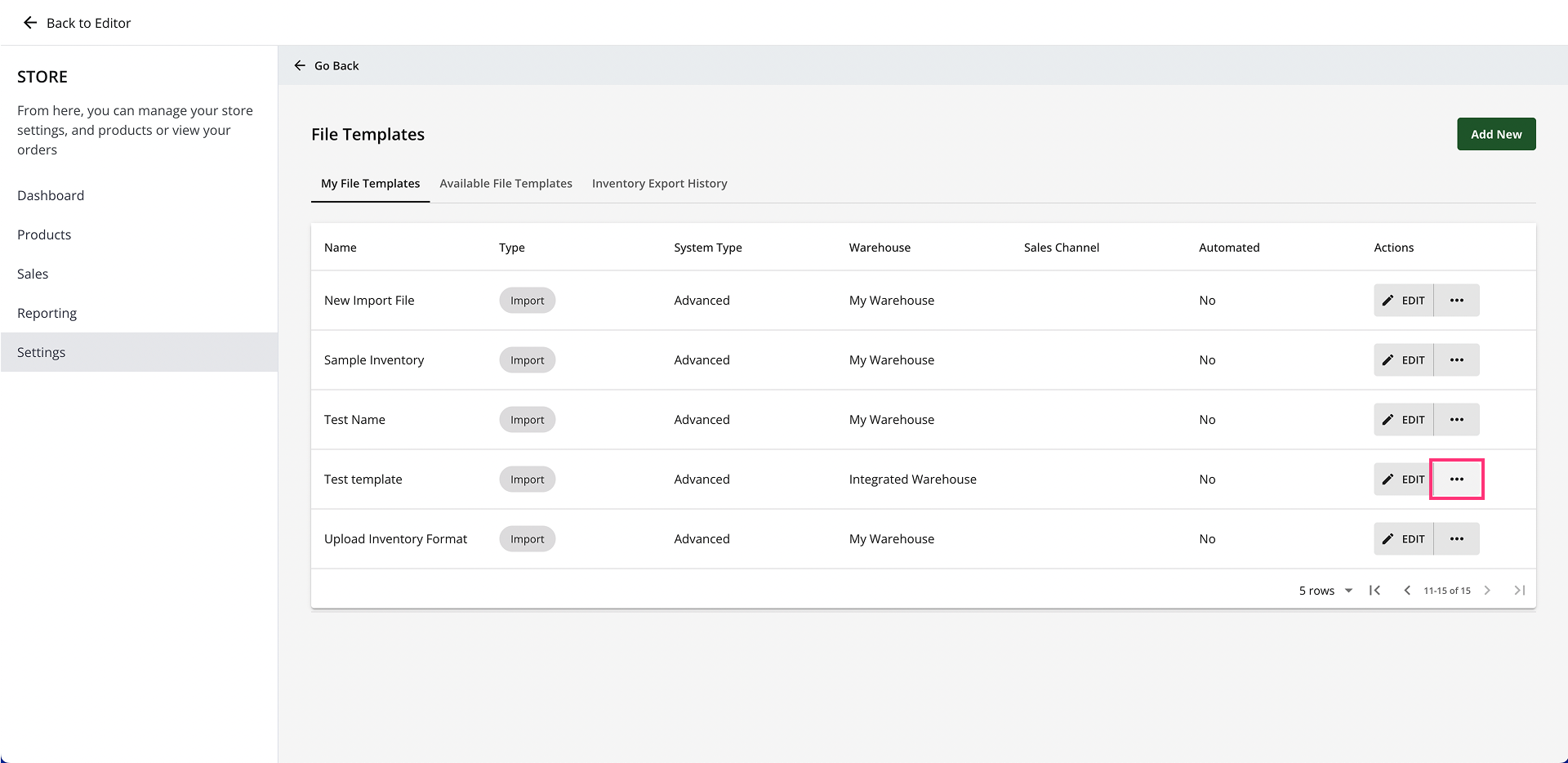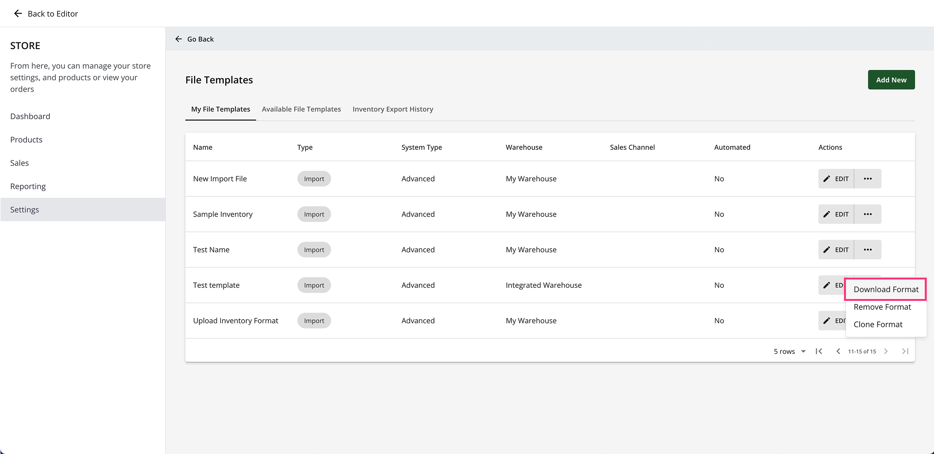 - This will take you to the File Templates page, where you can create, edit, or download an inventory template.
