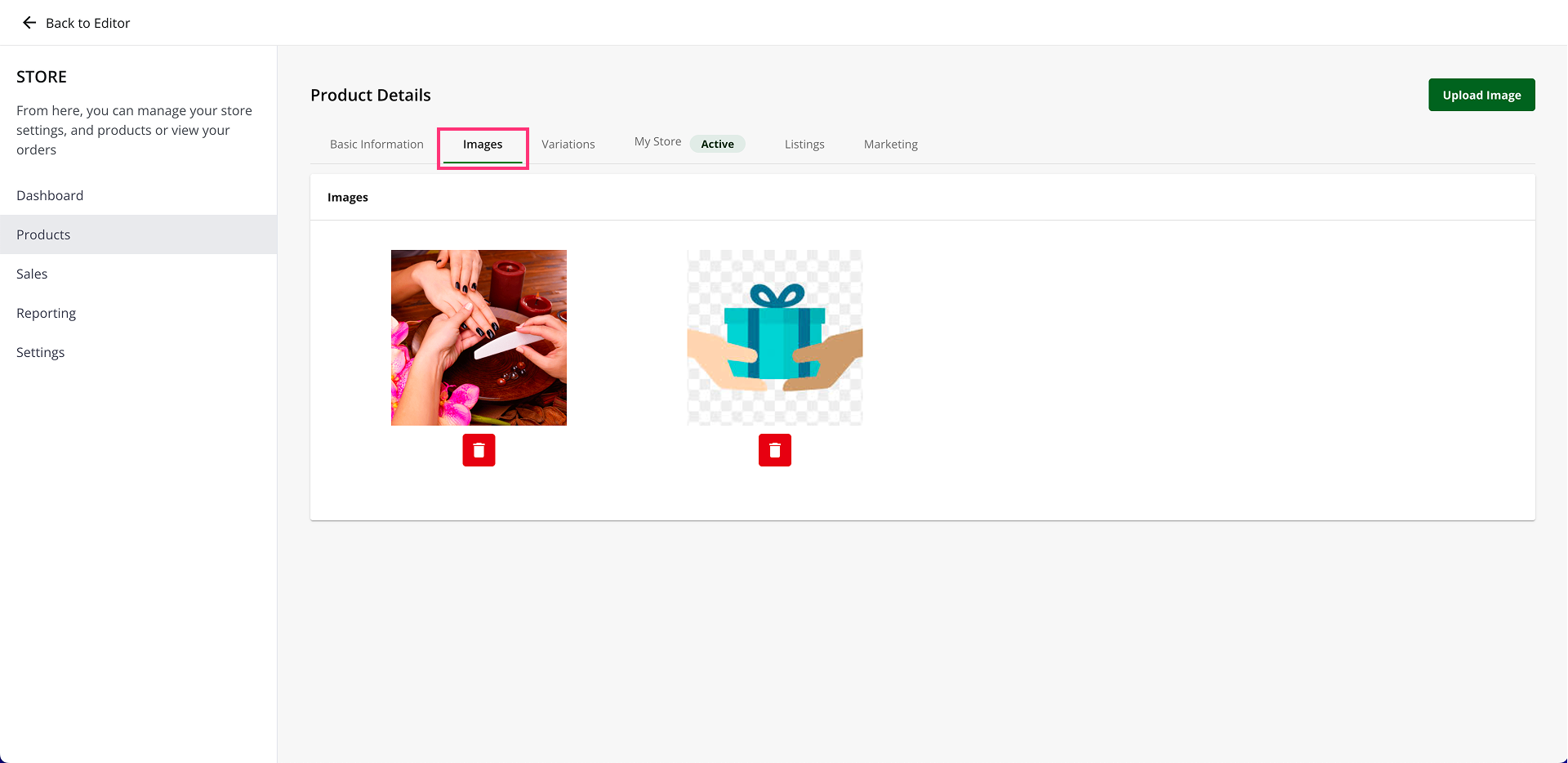 - Then, on the Product Details page, go to the Images tab.