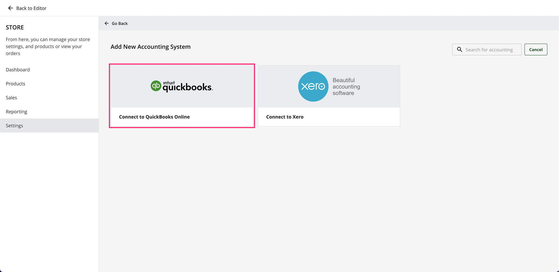 - Next, click the Connect Accounting System button.