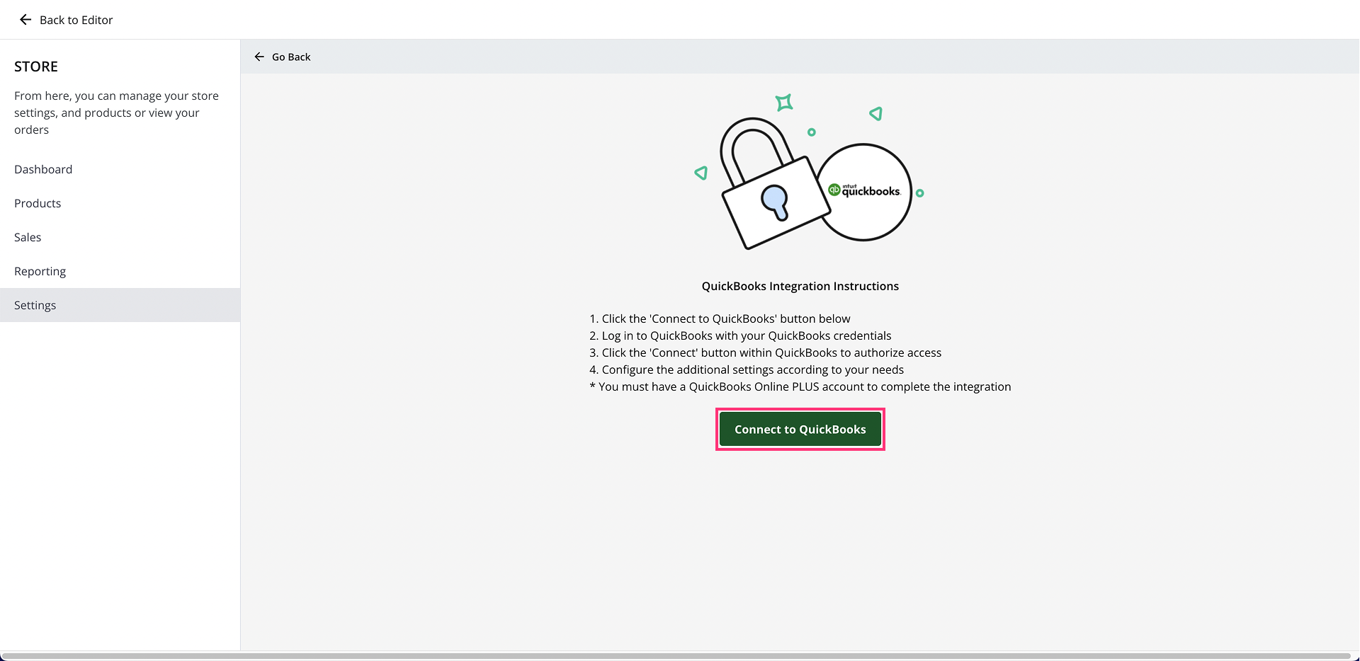 - Follow the instructions provided, then select Connect to QuickBooks to start the integration.