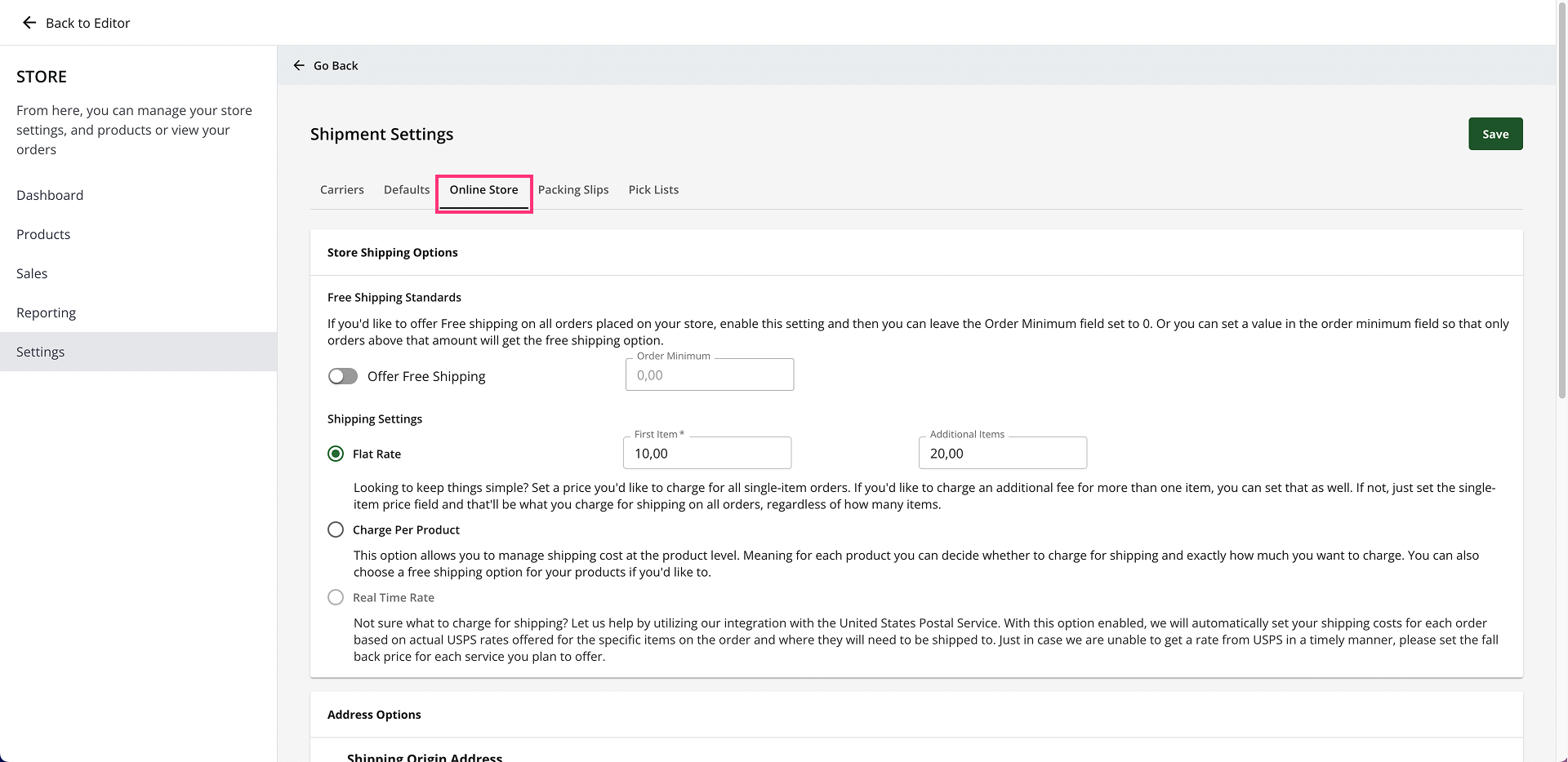 Tick the checkbox to use your Shipping Origin Address as the pickup address: