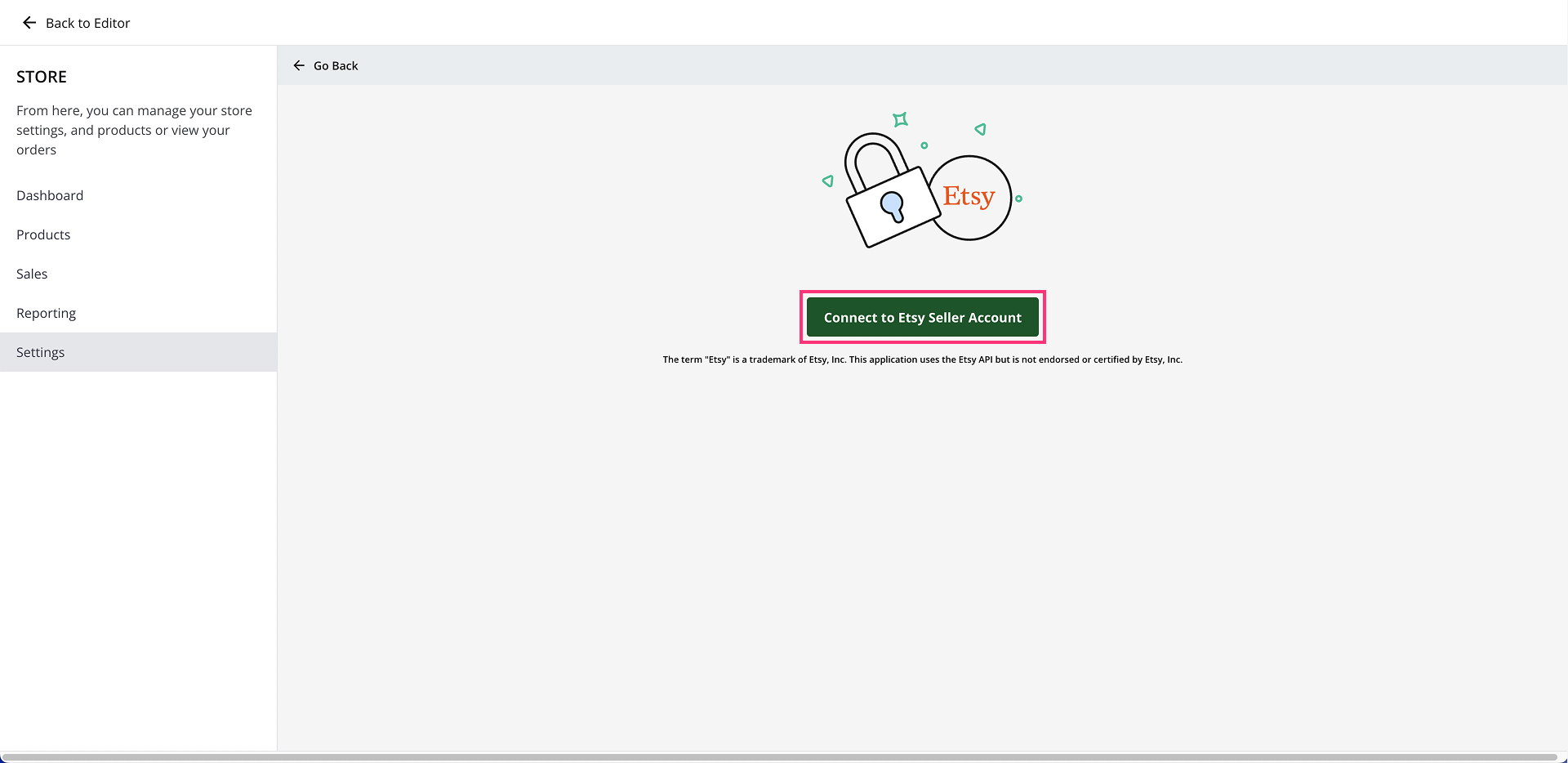 - This will bring you to an integration page for Etsy. Click the Connect to Etsy Seller Account button and sign in to your Etsy shop.