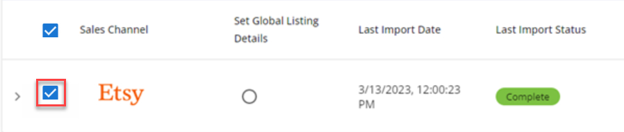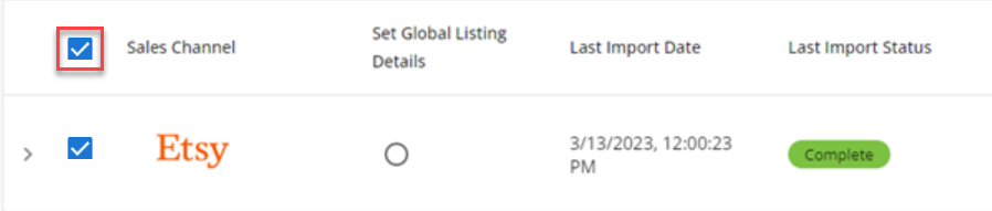 Mark the checkboxes on the left of specific Sales Channels to refresh specific listings only: