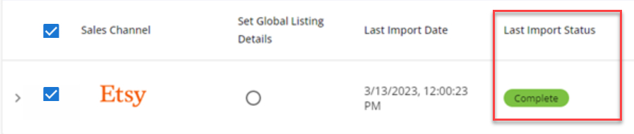 Please Note: You can check the Last Import Status on the last column of the Refresh Listings pop-up.