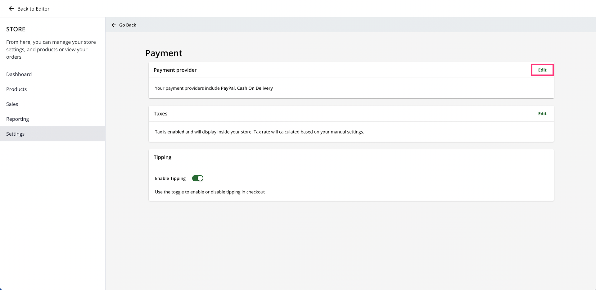 - Cash On Delivery – Click the box to enable Cash on Delivery for your eCommerce Store. Then, click Submit.