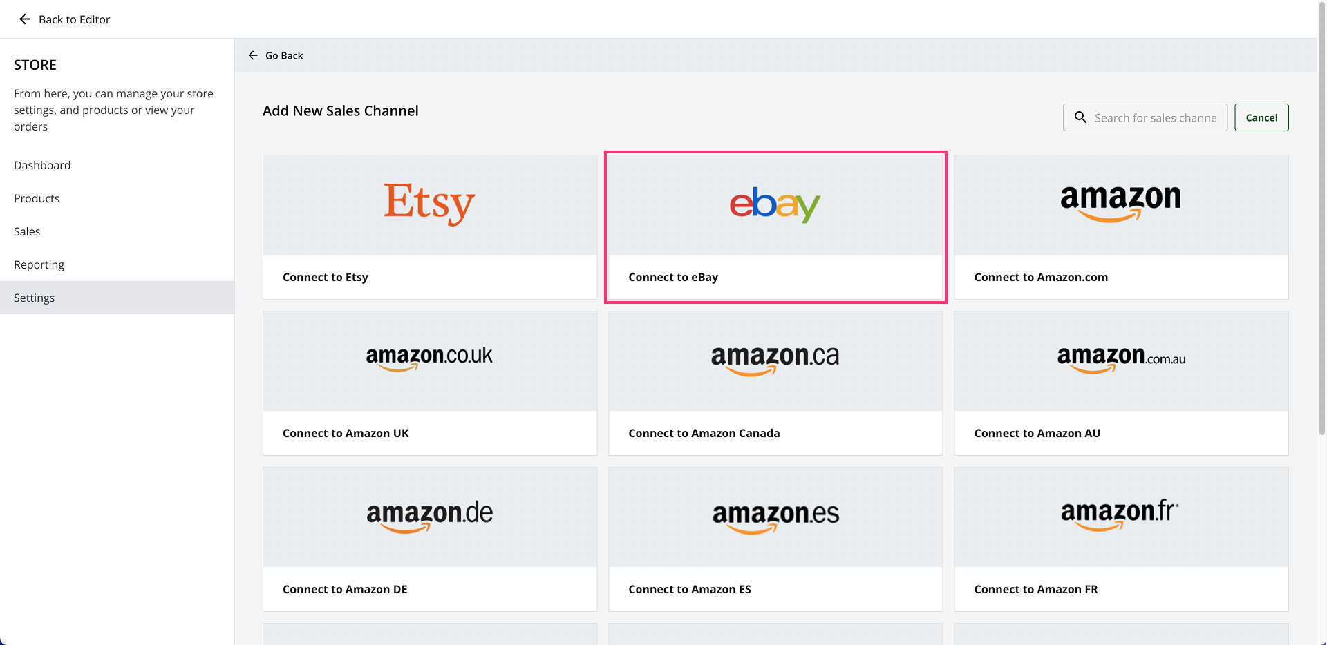 - Once done, you will be redirected back to your eCommerce dashboard tab with eBay showing as connected.