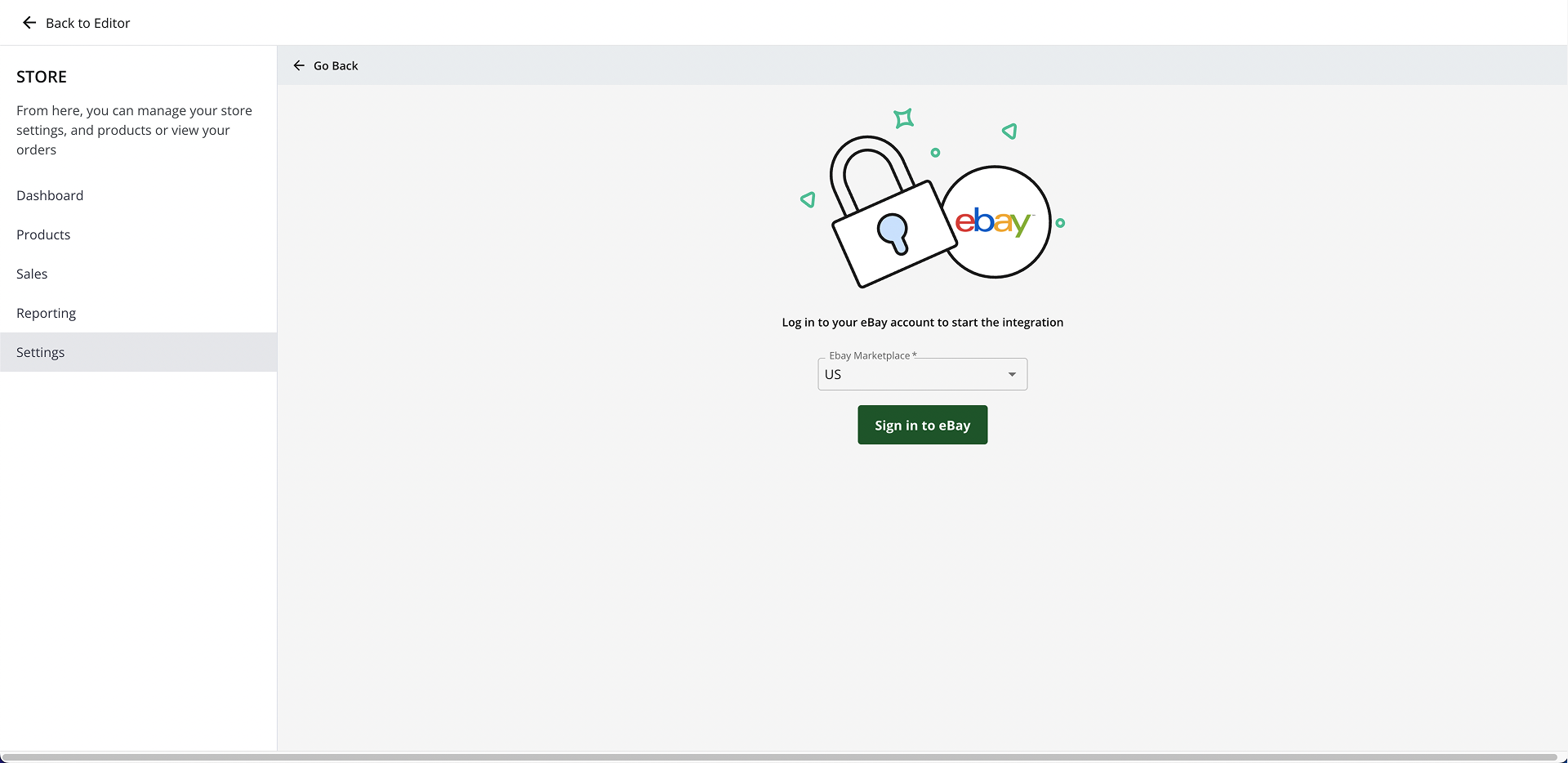 - Select Connect to eBay. This will take you to the eBay integration page: