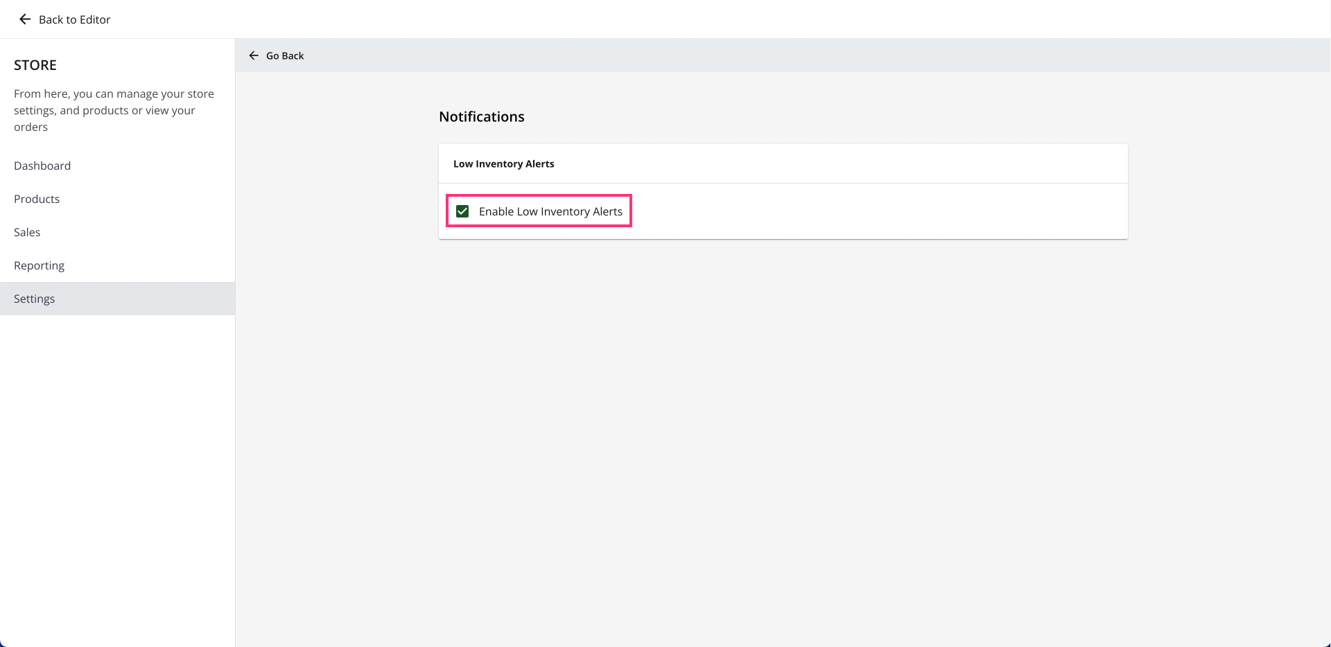 Take advantage of low inventory alerts to prevent getting out of stock. Note that low inventory can indicate some issues, such as lower or decreased demand and marketing problems. Learn how to enable your inventory alerts and restock your inventory on time.