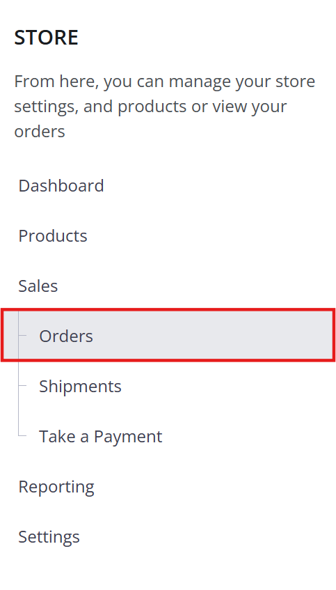 If you want to manage your orders further, click on Store in the left navigation menu. Click on Sales, then click on Orders.