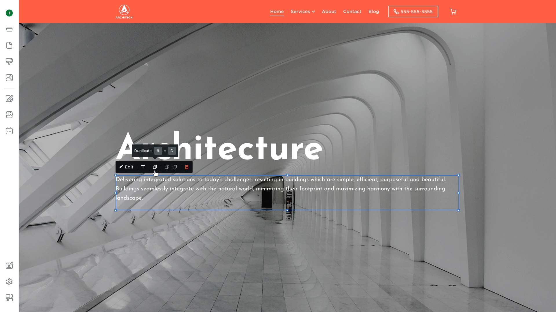 - Delete - Deletes selected element from page.