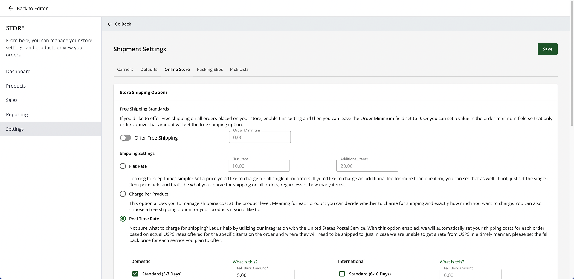 - Enter a Fall Back Amount (the default shipping rate charged in the unlikely event we can't get a rate from USPS).