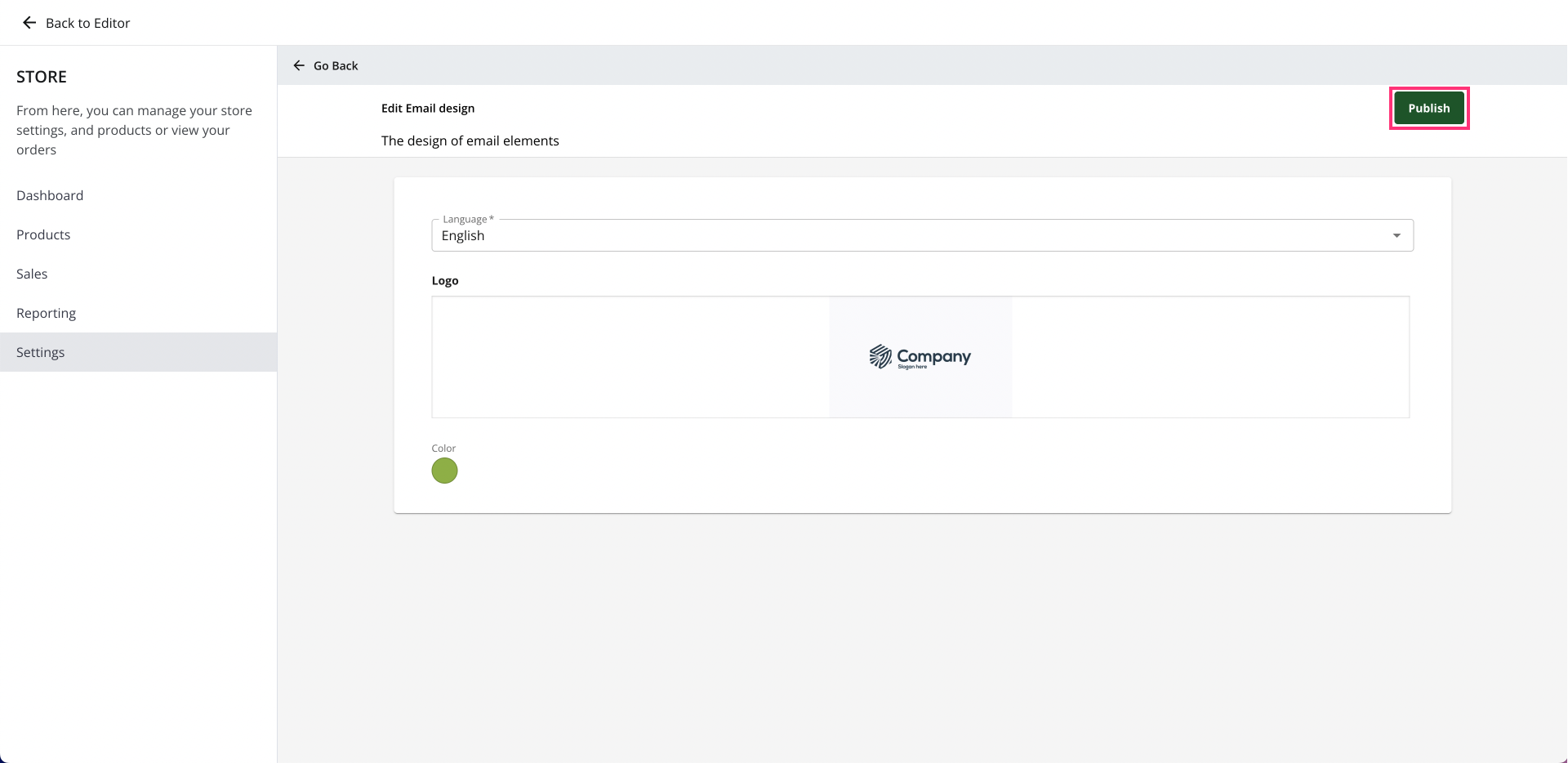 - Once you have selected a logo, click the Publish button to save your changes.