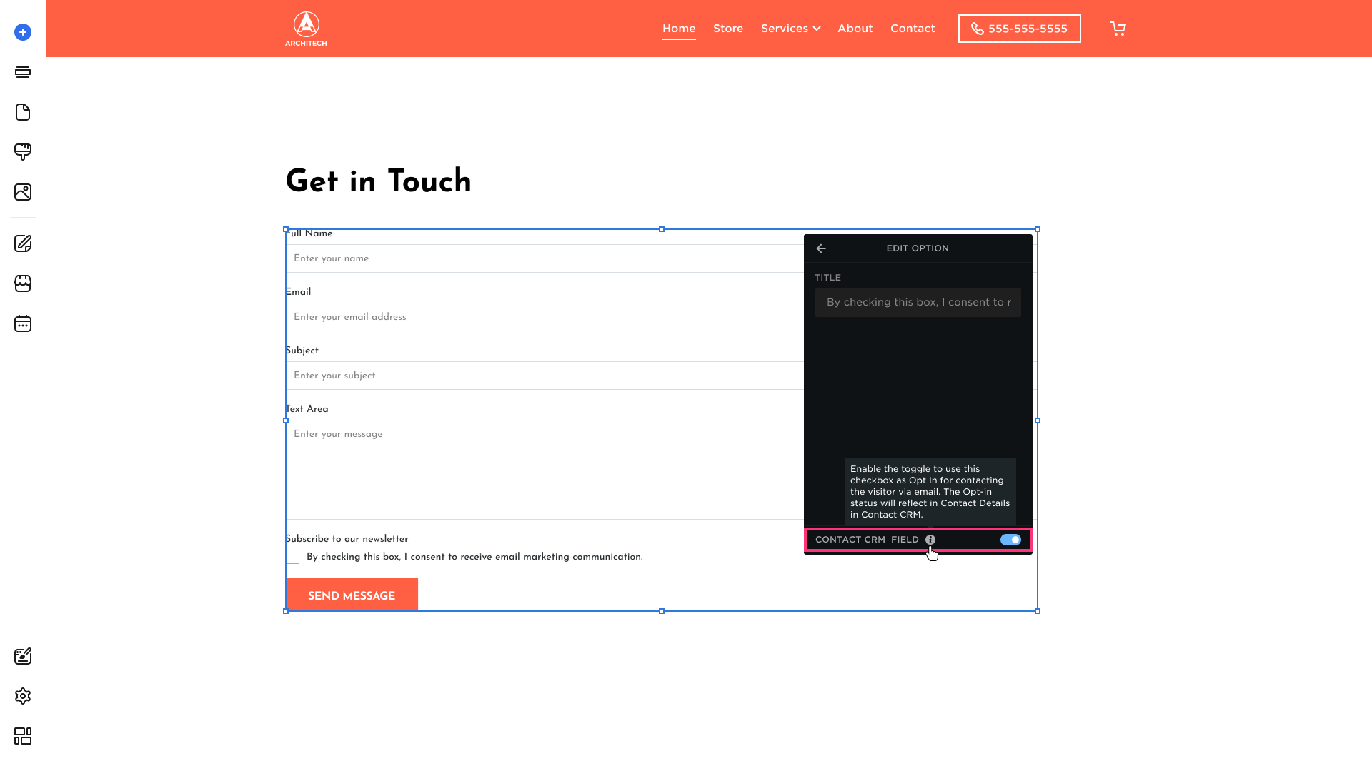 Please Note: If you enable the Required Field toggle, your site visitors will have to check the box in order to submit the form.