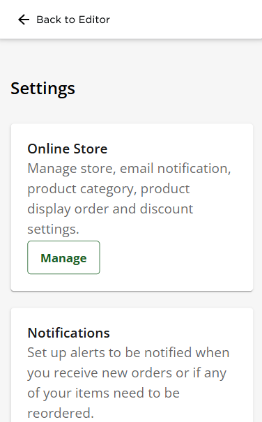 Please Note: This article refers to customers with enabled Online Store, Online Marketplaces and eCommerce plans. If your plan is Online Store Builder, please refer to the Managing Online Store Builder in Mobile Editor article.