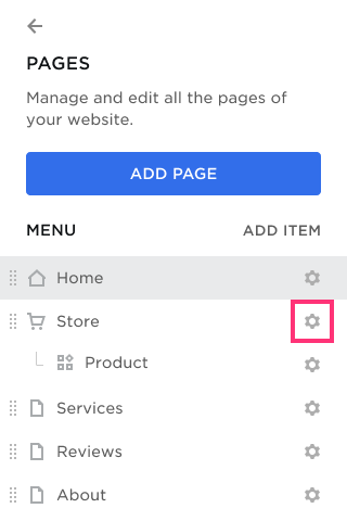Inside the Store section in the Site Editor you will be able to access your Store functionality. You will see the Store navigation immediately without the need to exit the Website Builder.
