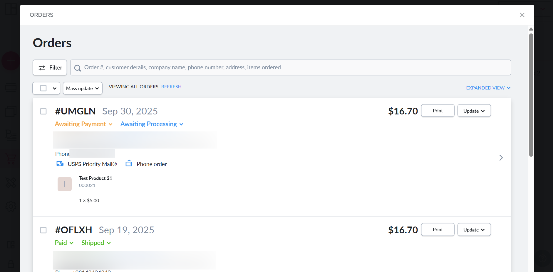 - Click on an order to access the Orders pop-up and select the order that you want to buy a shipping label for: