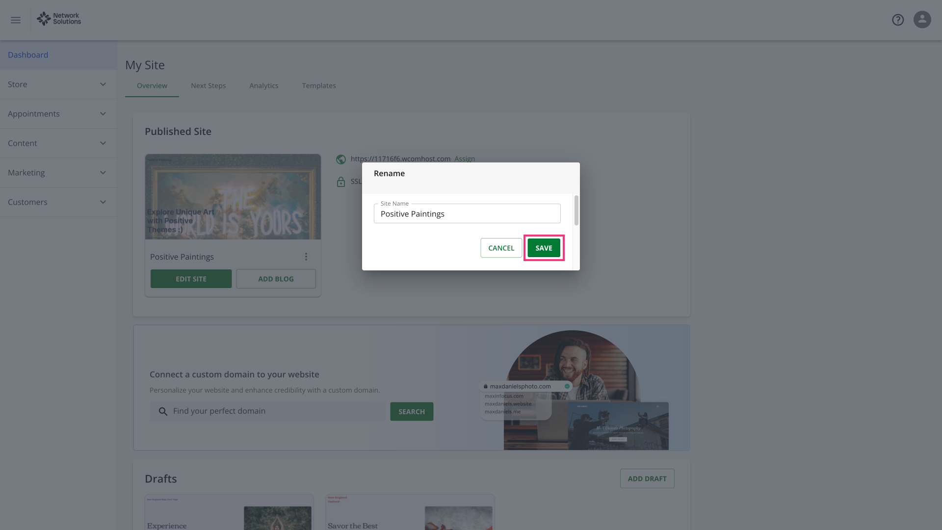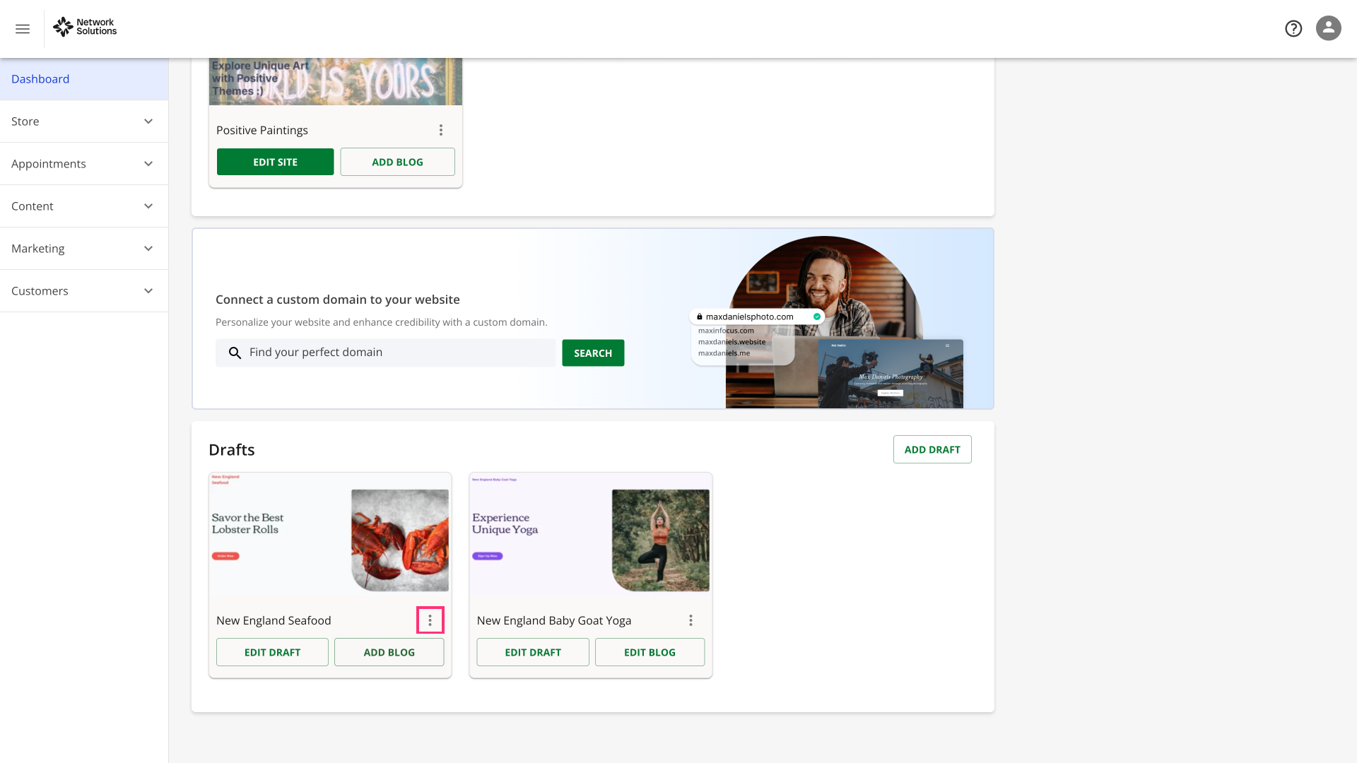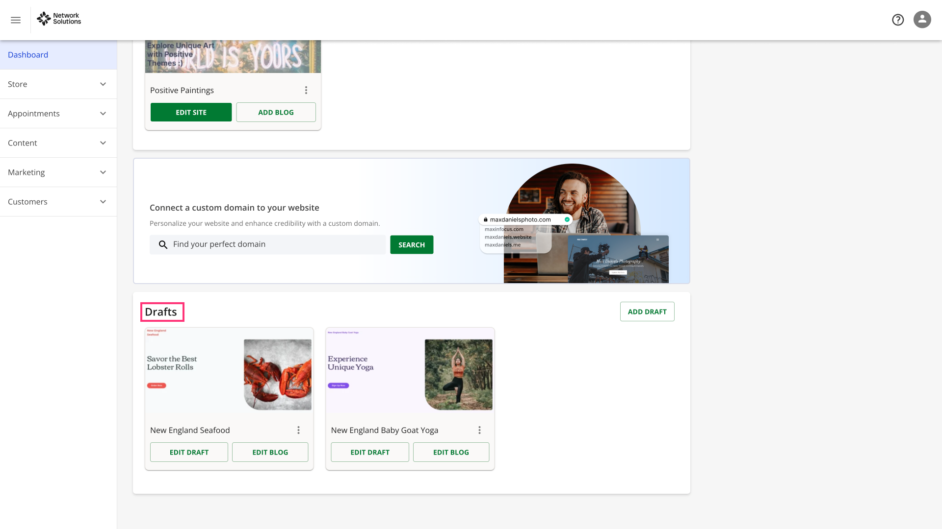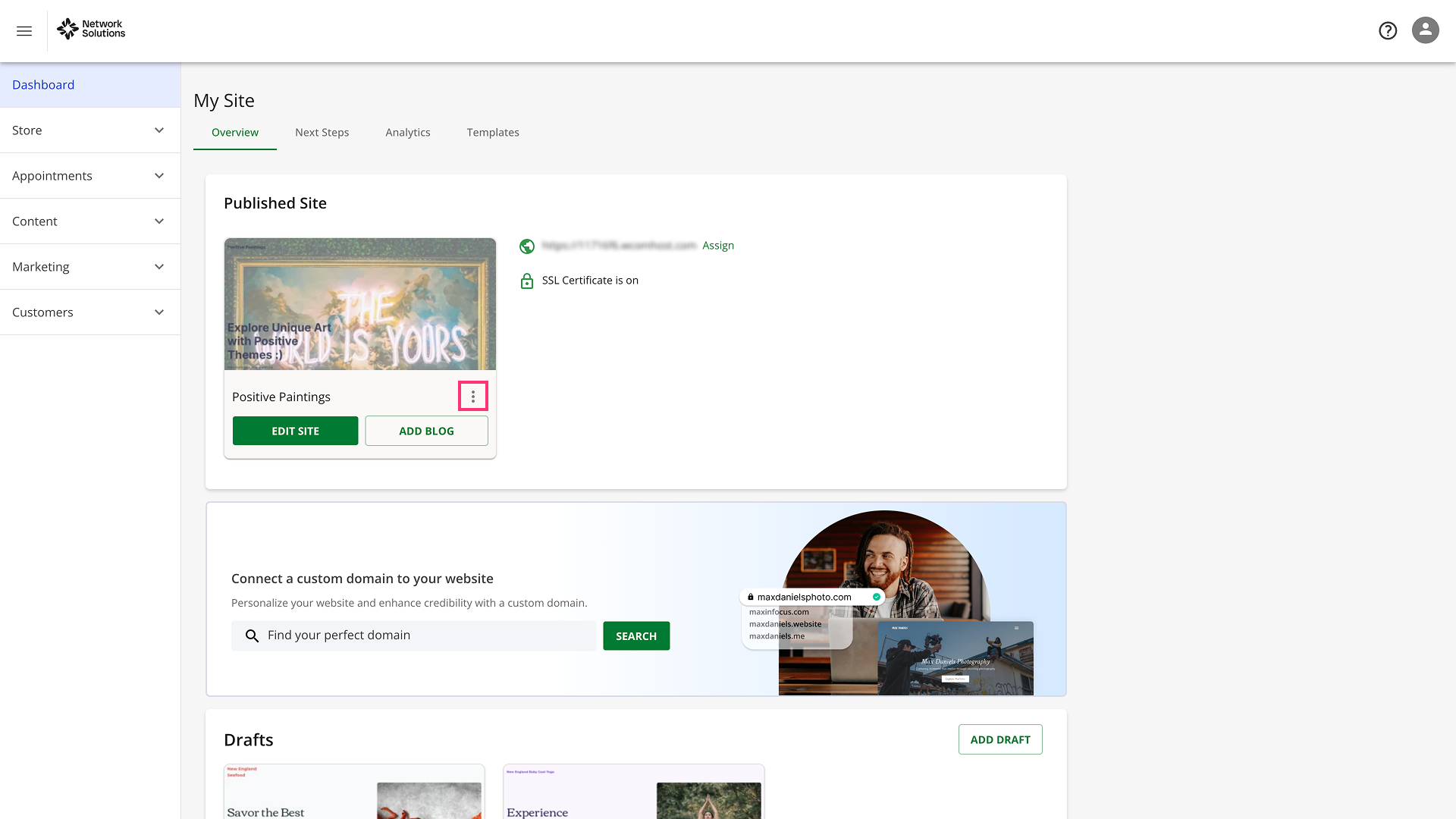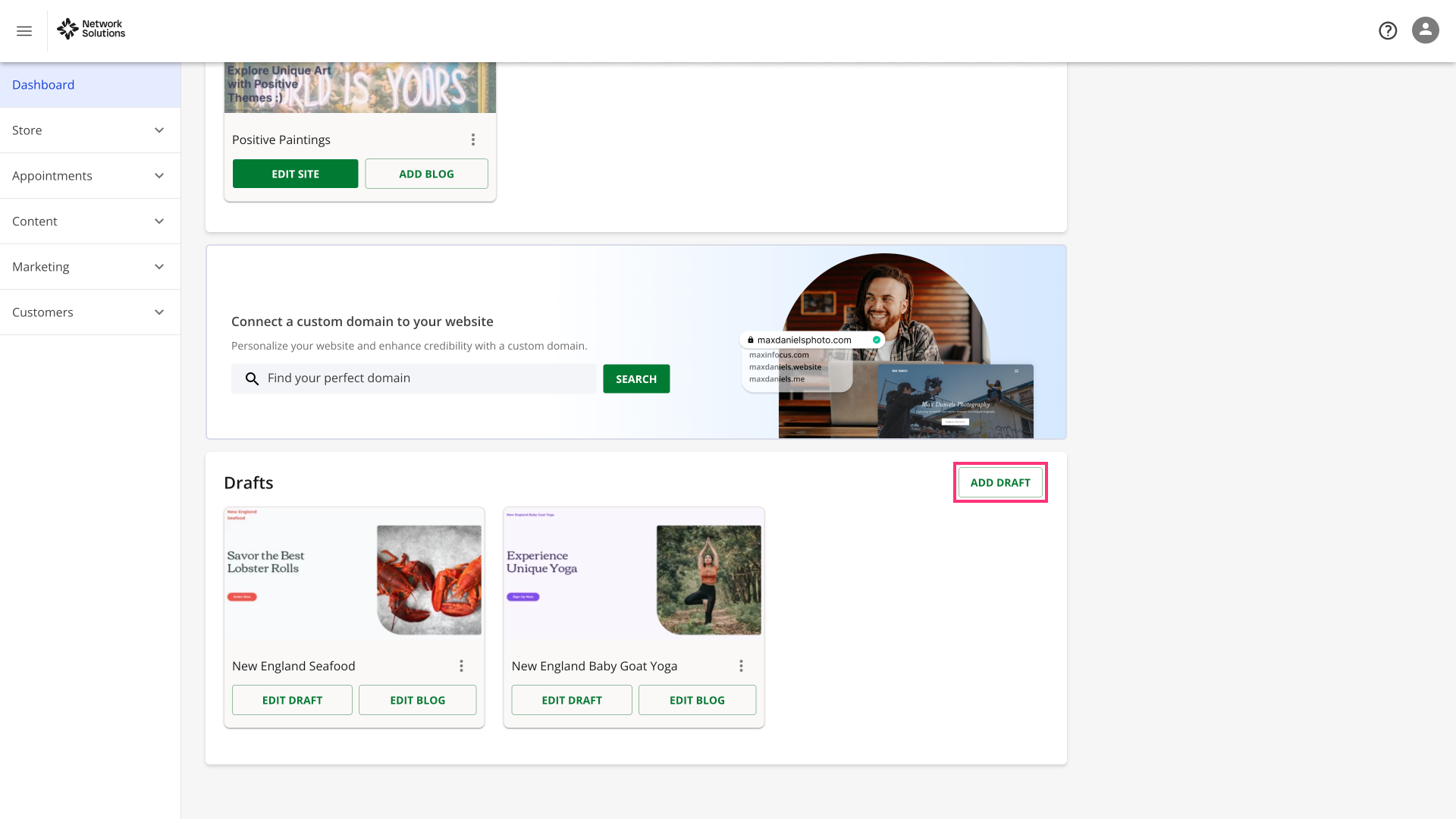 - You can add from 1 to 4 drafts in the Drafts Section (in addition to the published site):
