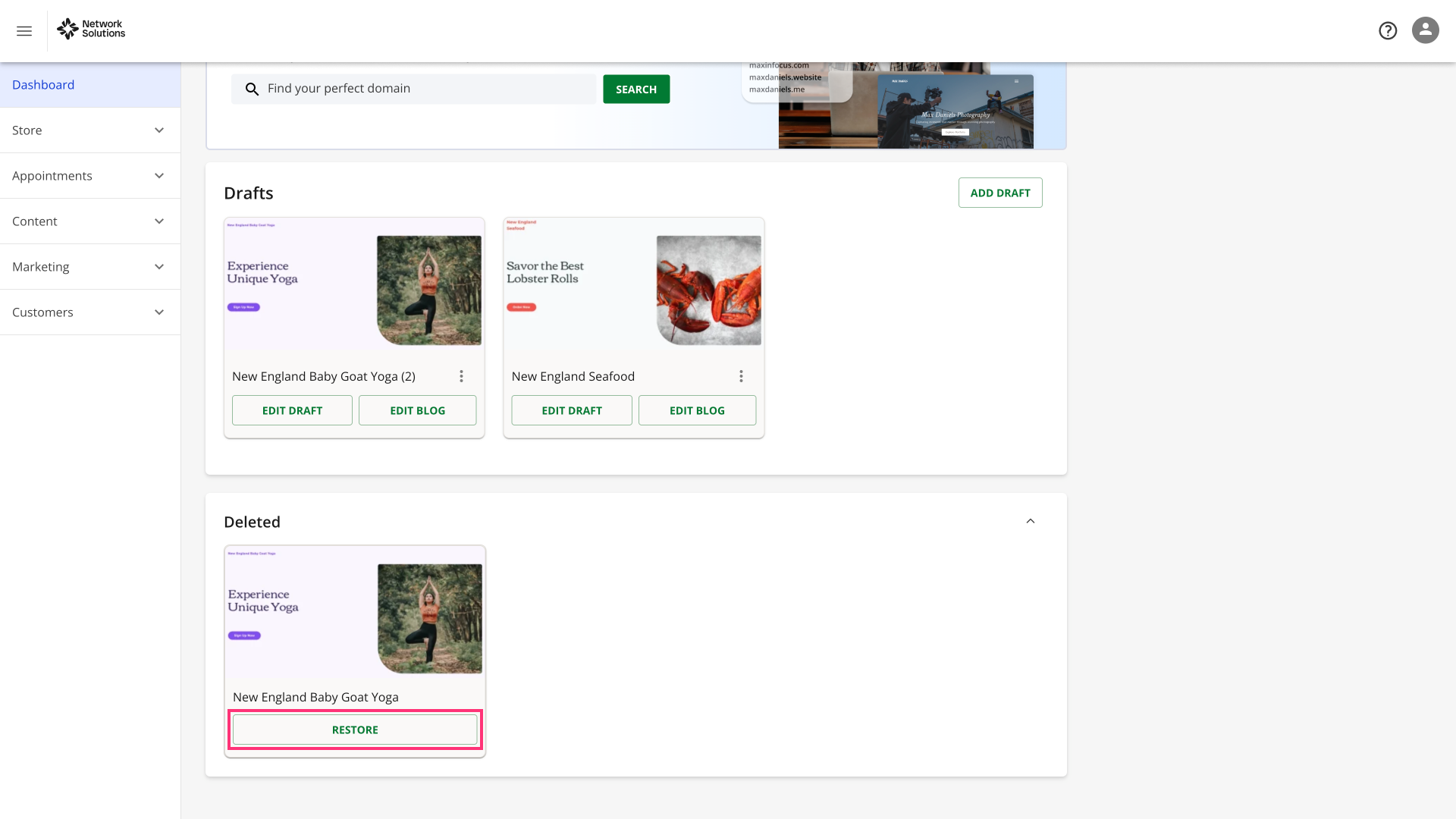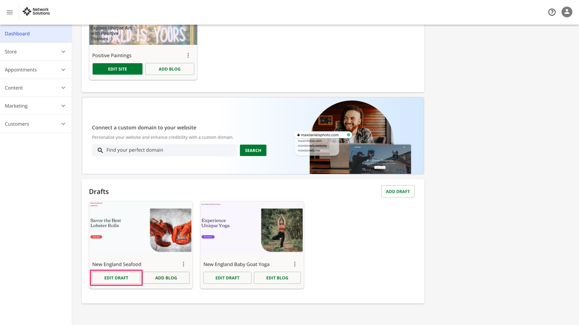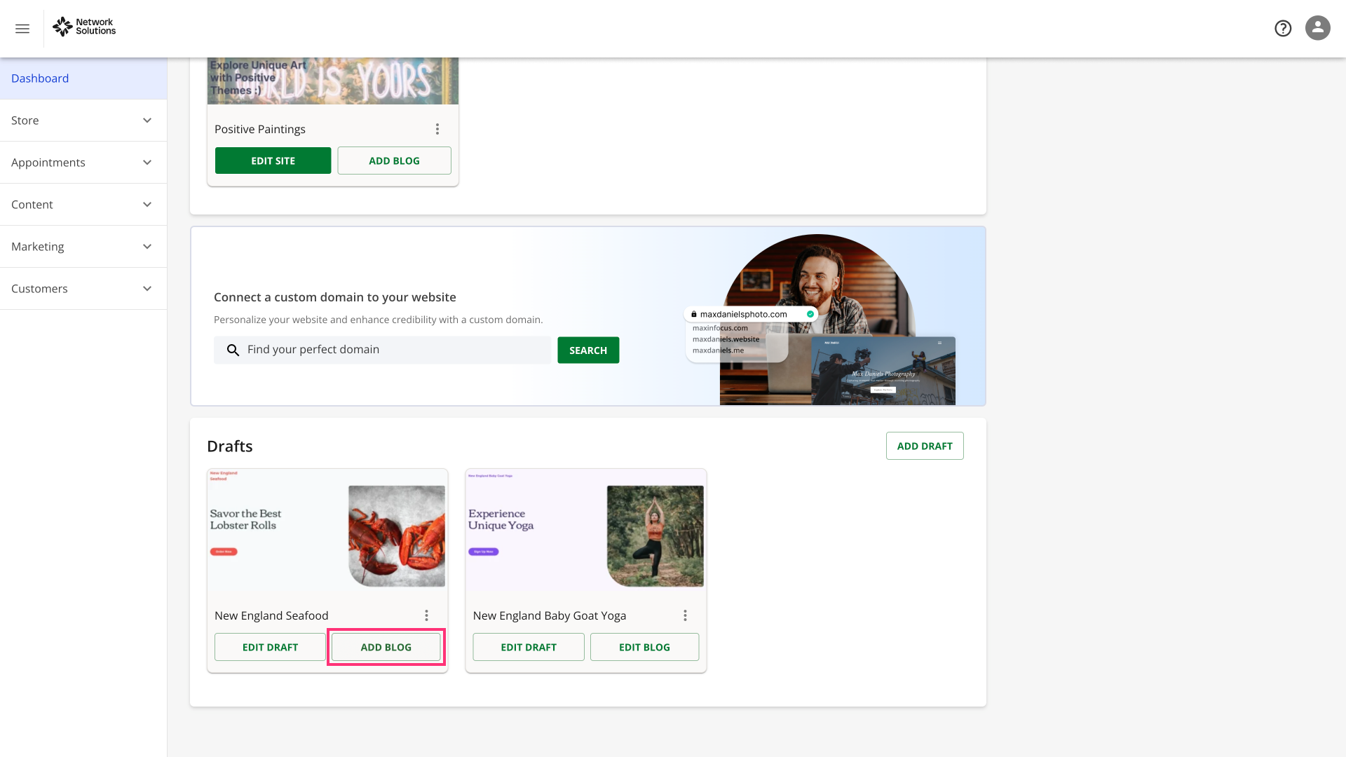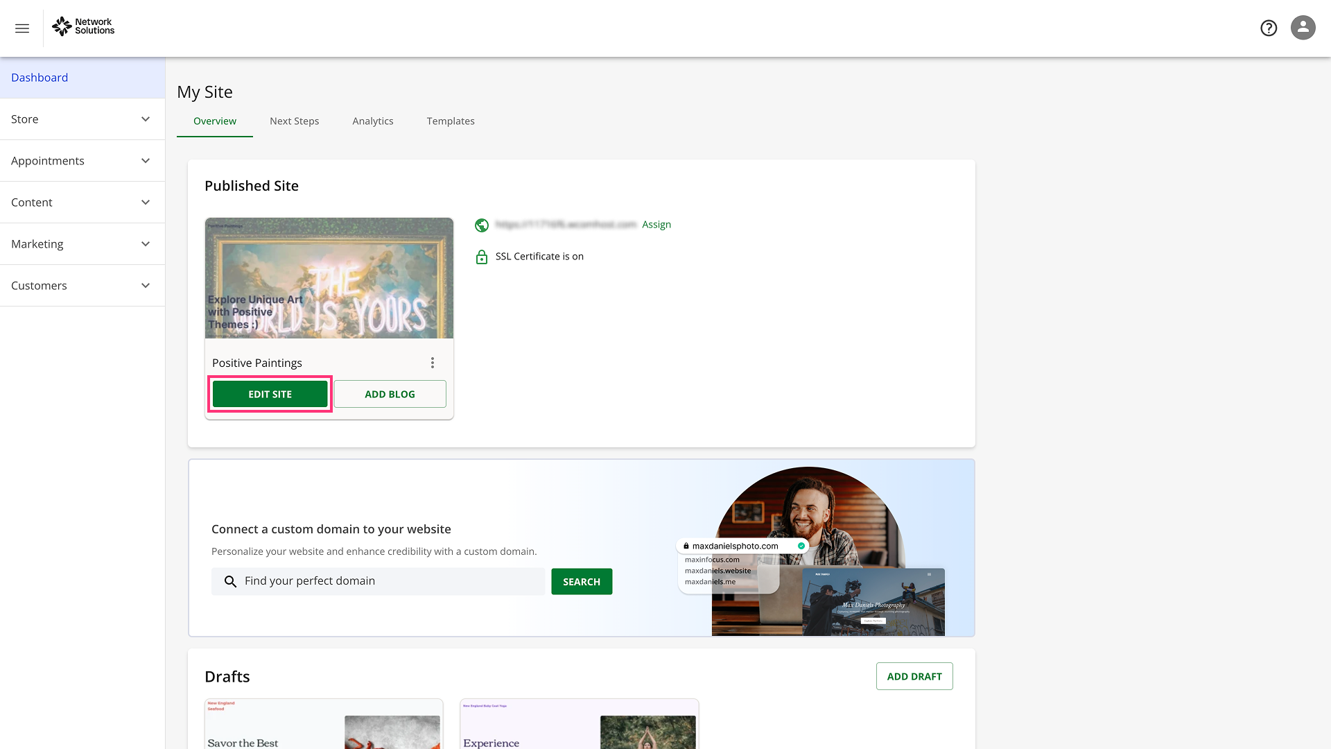 - If you already have enabled Blog on your website, select Edit Blog to access and manage your Blog from the Drafts section: