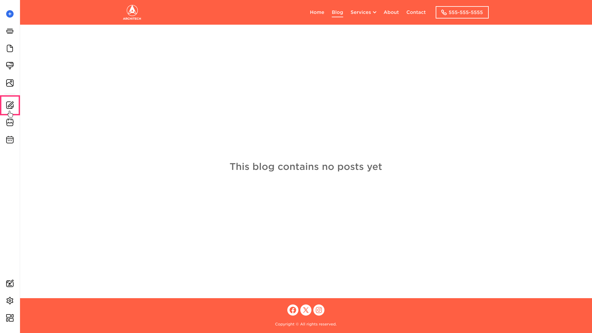 - Select Blog on the left sidebar of the Site Editor: