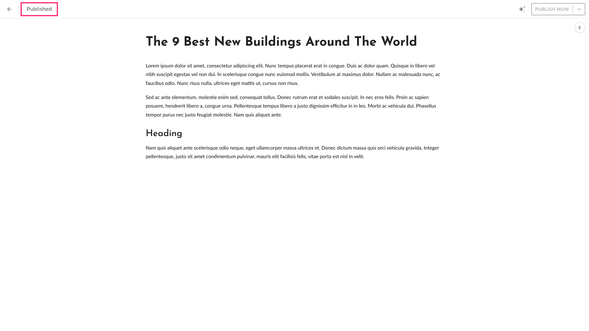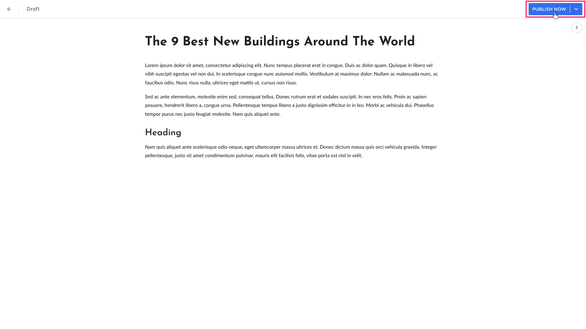 - After adding the content, you may publish your post by clicking the Publish Now button: