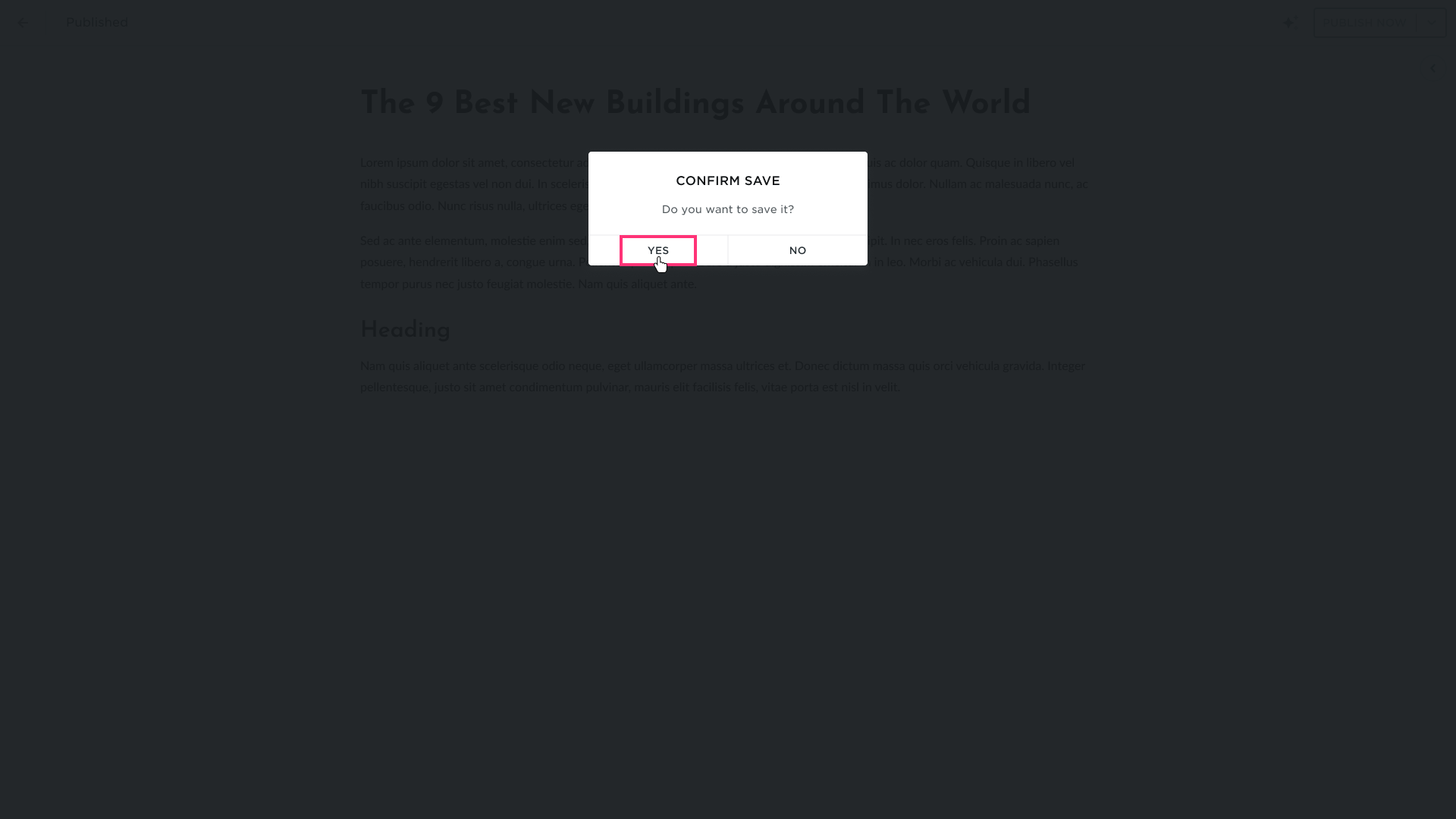 - Confirm by clicking Yes on the pop-up. If you want to delete a post, click No: