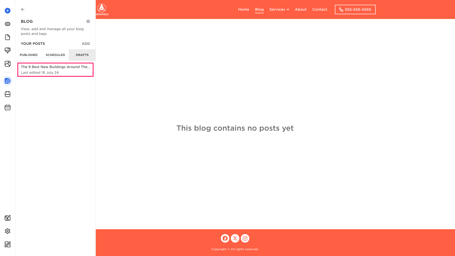 Please Note: Your website needs to be published for Blog posts to appear live.