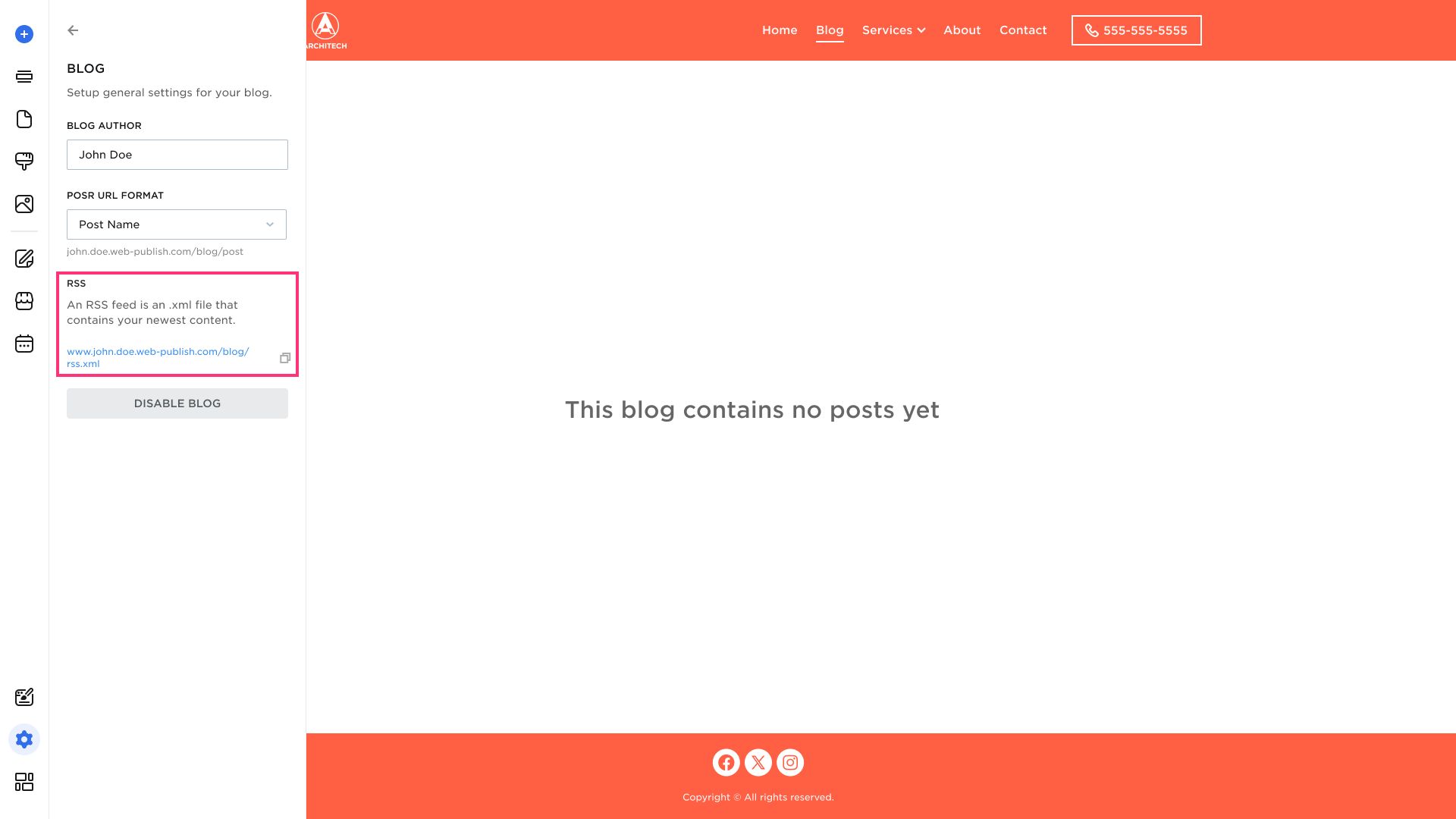 - RSS. You will find the RSS.xml file for your Blog in the RSS section:
