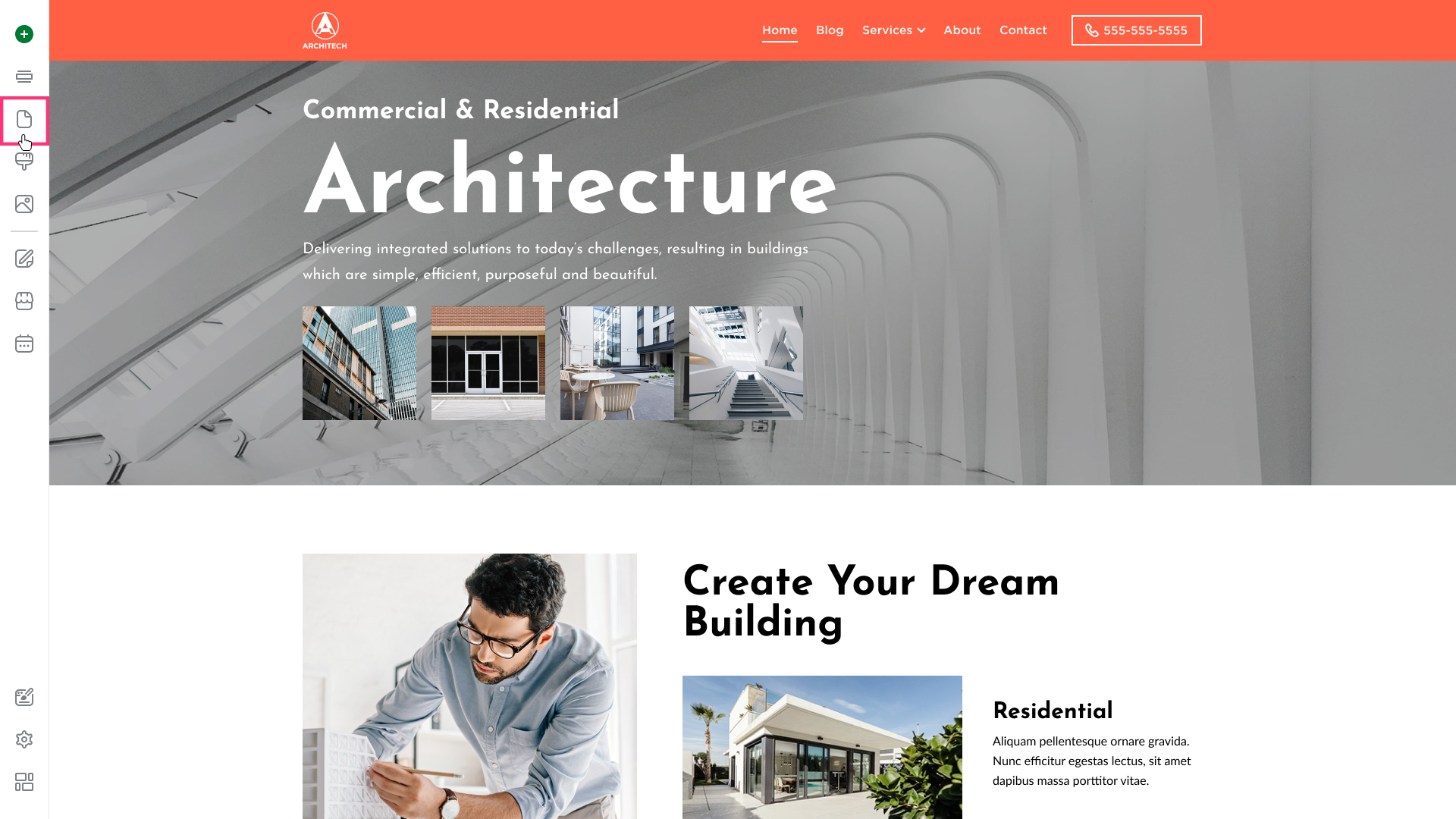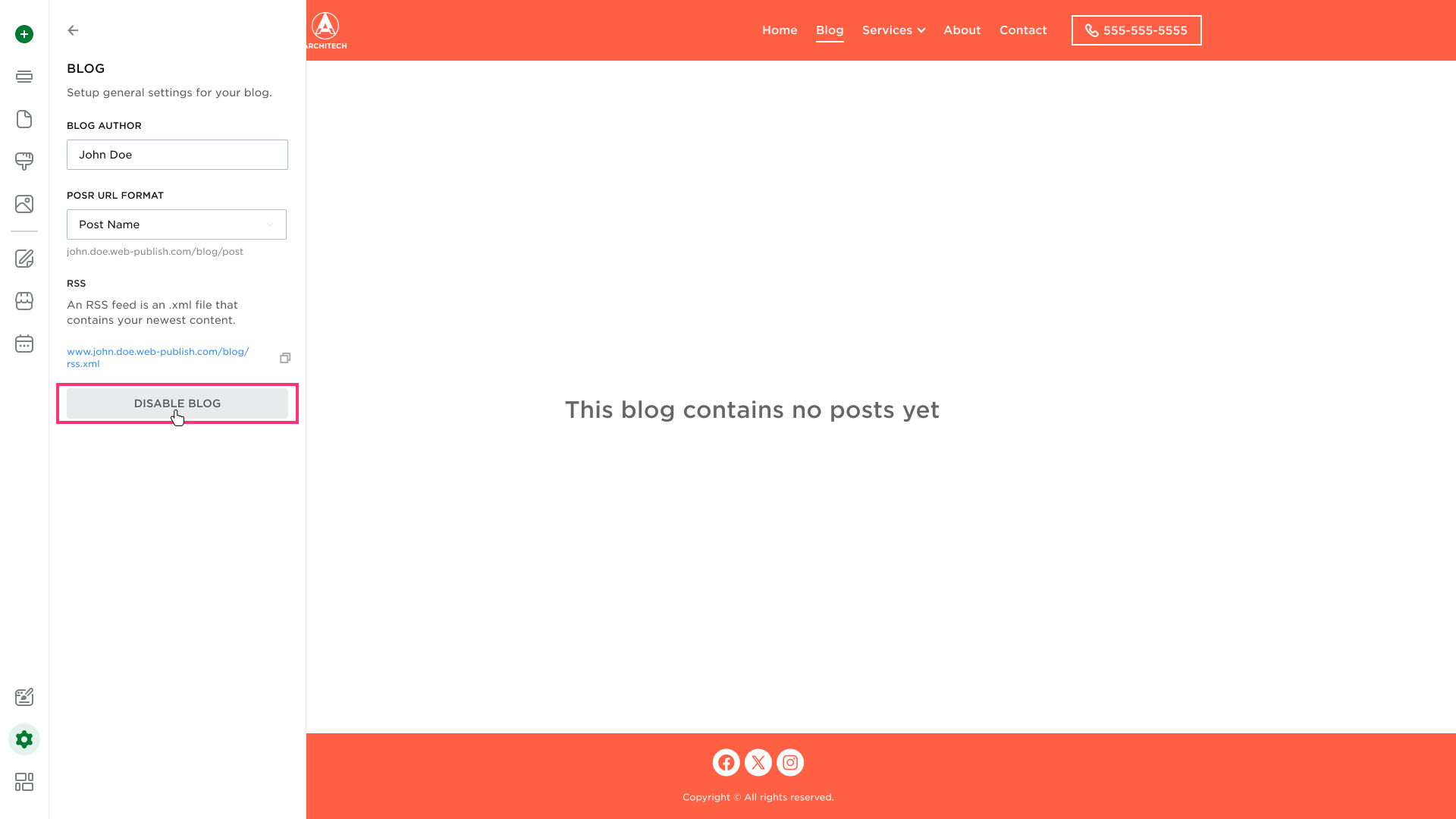 - Click the Add Blog button in the Published Site or Drafts section to enable the blog, and access the Blog section of the Site Editor: