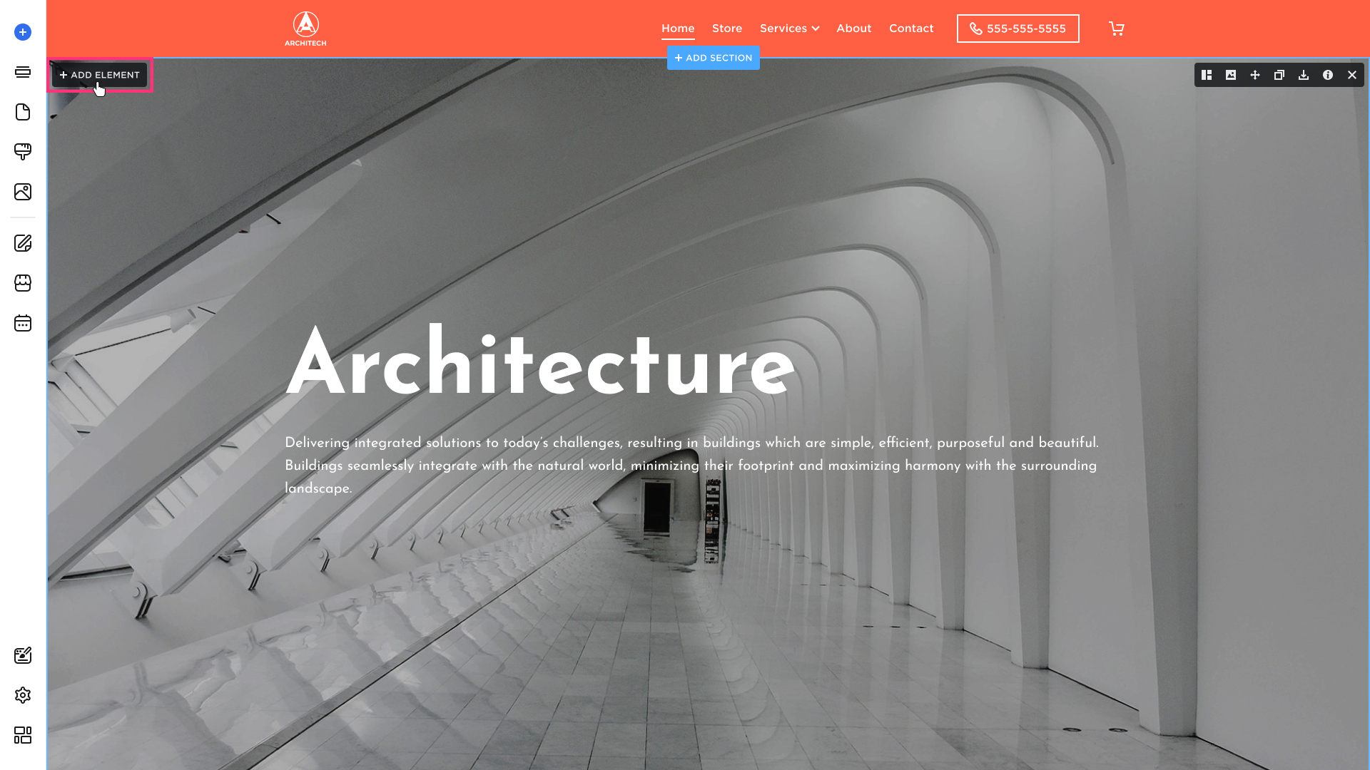 - Hover over the desired section and click Add Element: