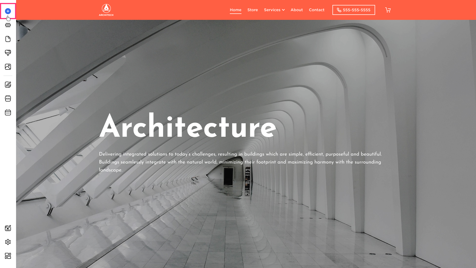 - Hover over the left sidebar of the Site Editor and click Build (+) button: