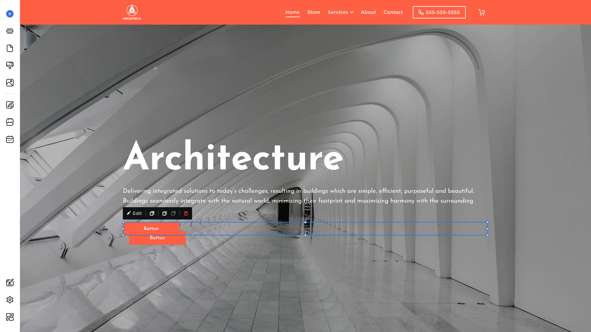 - To duplicate the button, click on it and choose the Duplicate button that appears in its toolbar: