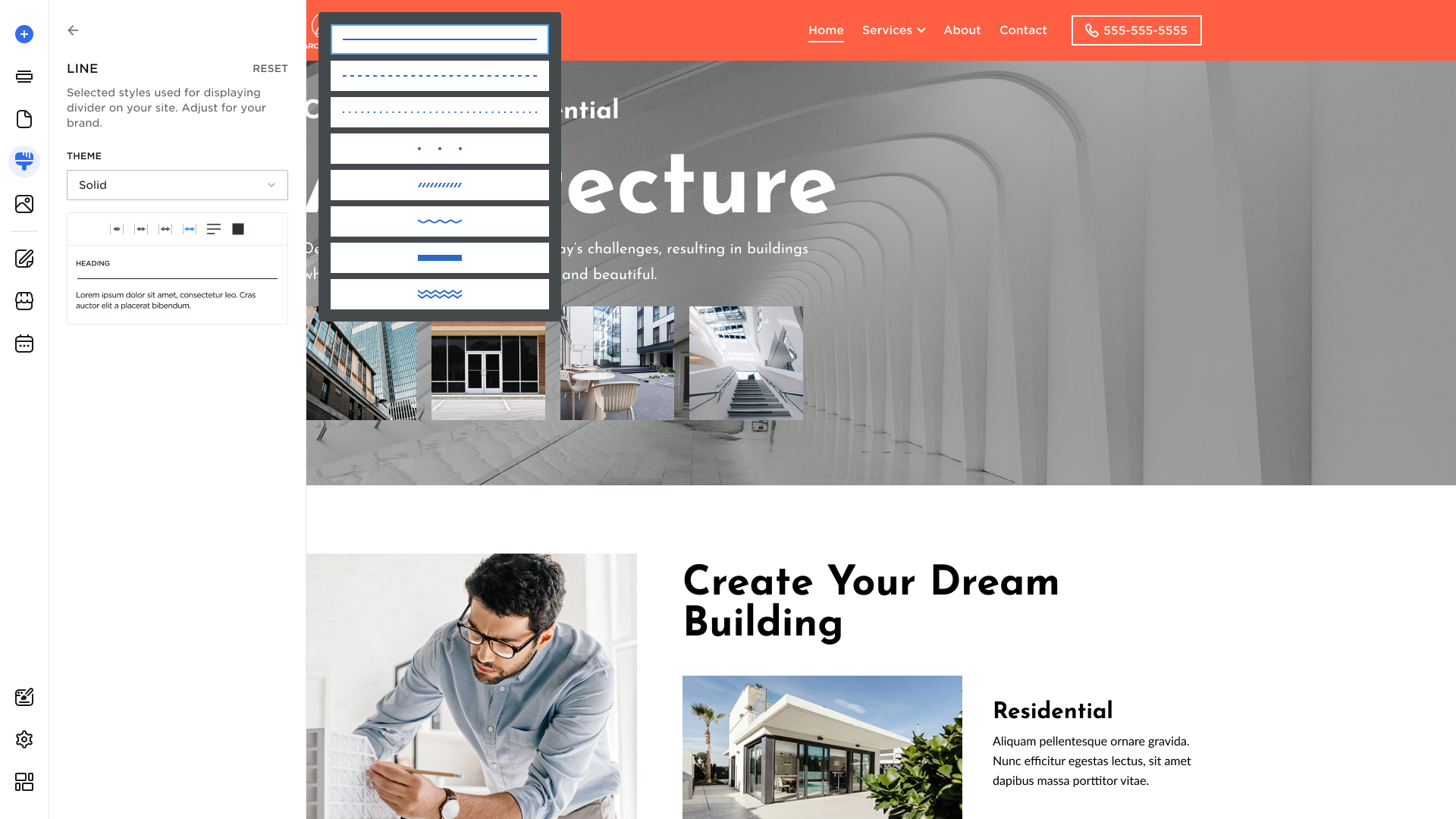 Customize line by theme, size, alignment, and color for your website. All the changes are global and will be applied to all lines on your website immediately.