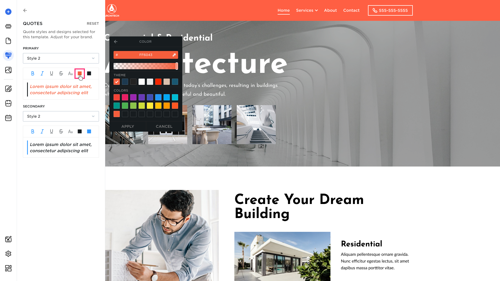 Enhance your website with customized quotes. While each template has its own default quote styles, you can customize them to your preferences. Quote settings are global and apply to all website pages.