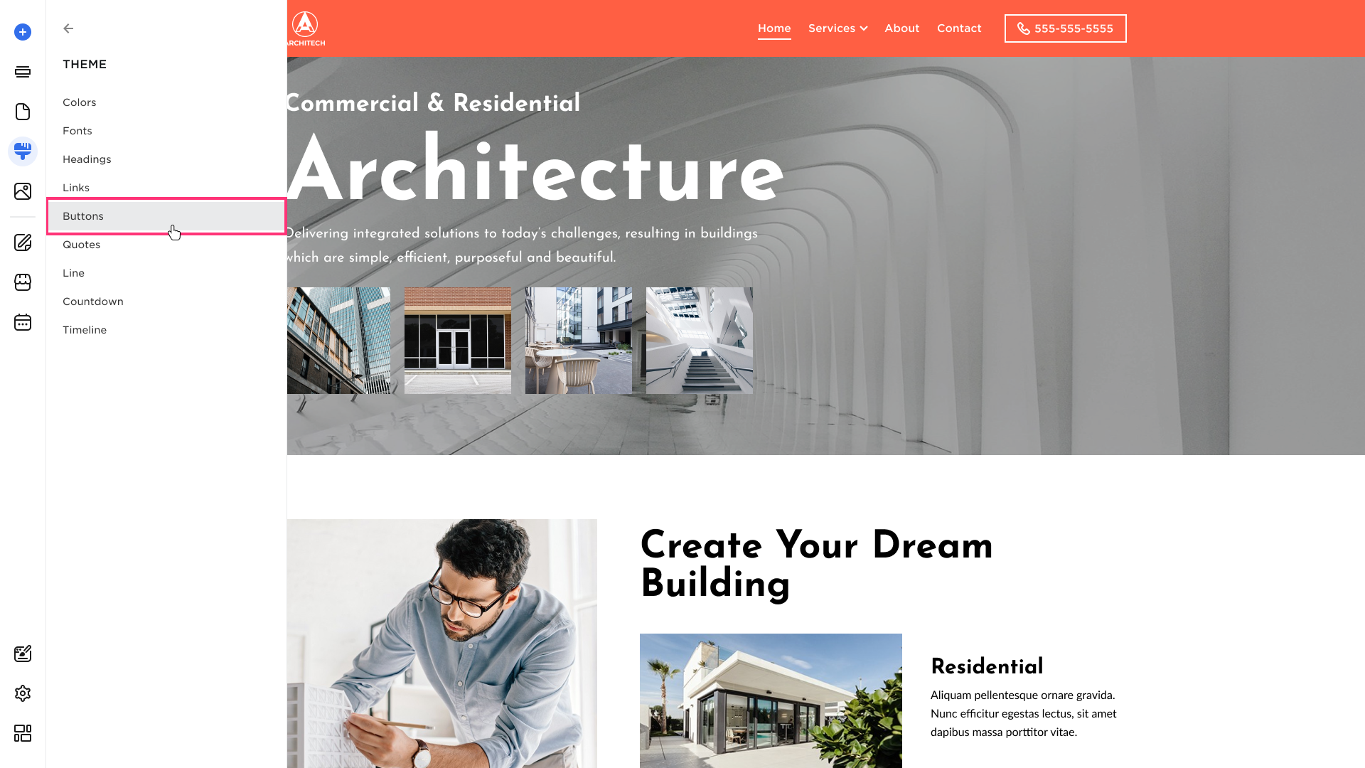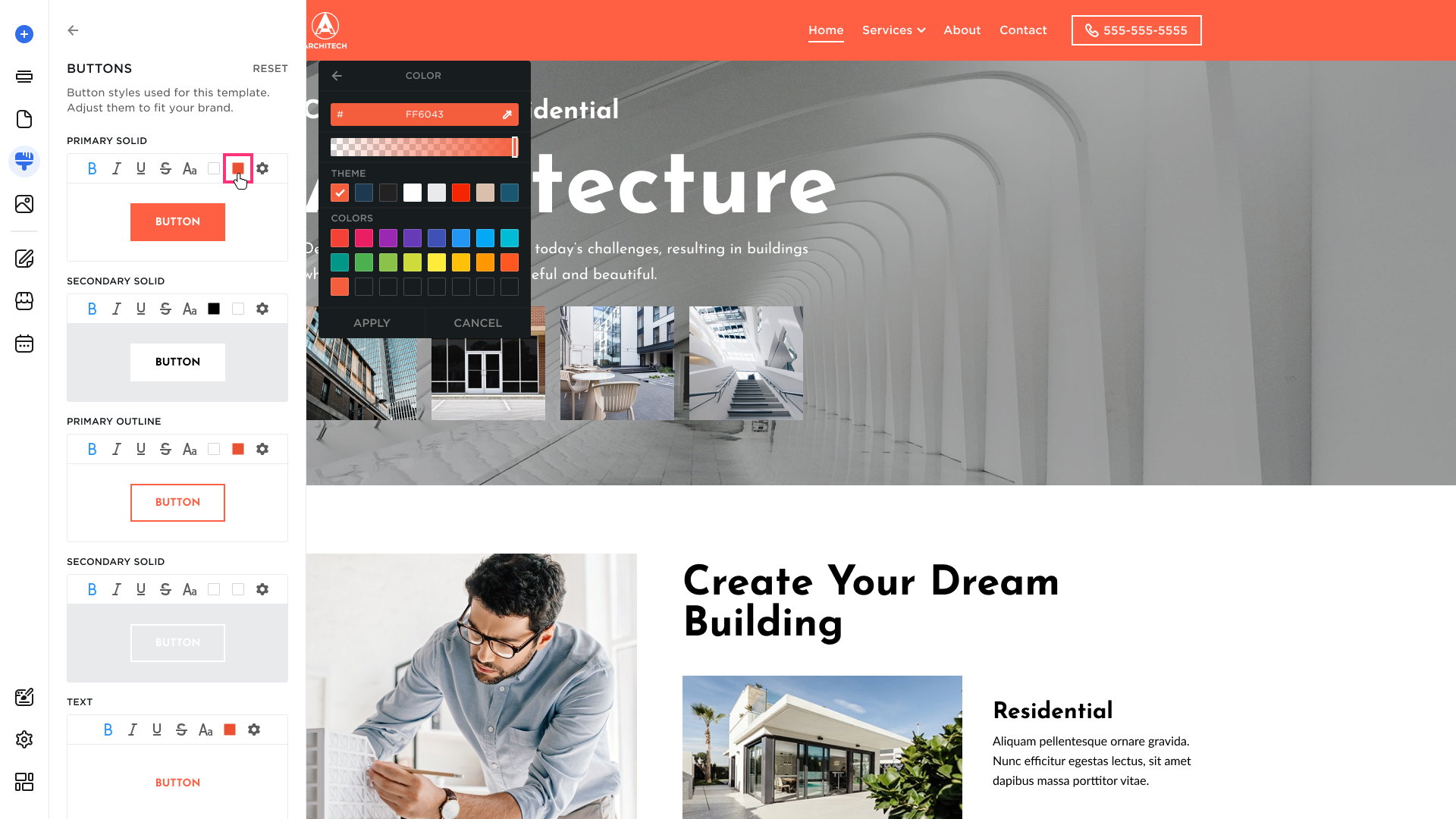 Please Note: Theme Settings will only apply to the features with default settings. If you've already customized one or more buttons on the website, Theme Settings won't overwrite those customizations.
