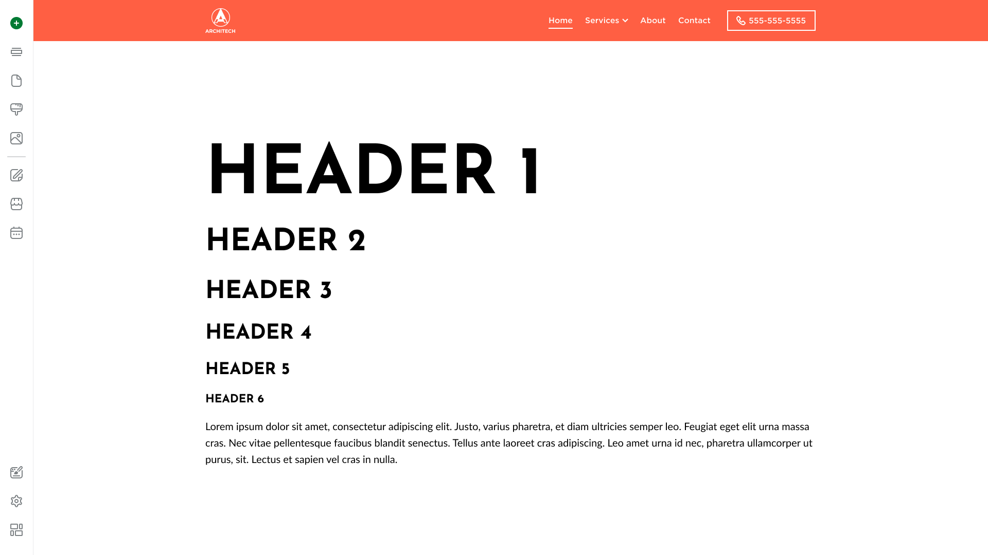 Each template has its own default heading settings, but you can customize the size and style of each heading to suit your preferences. These settings are global and apply to all website pages.
