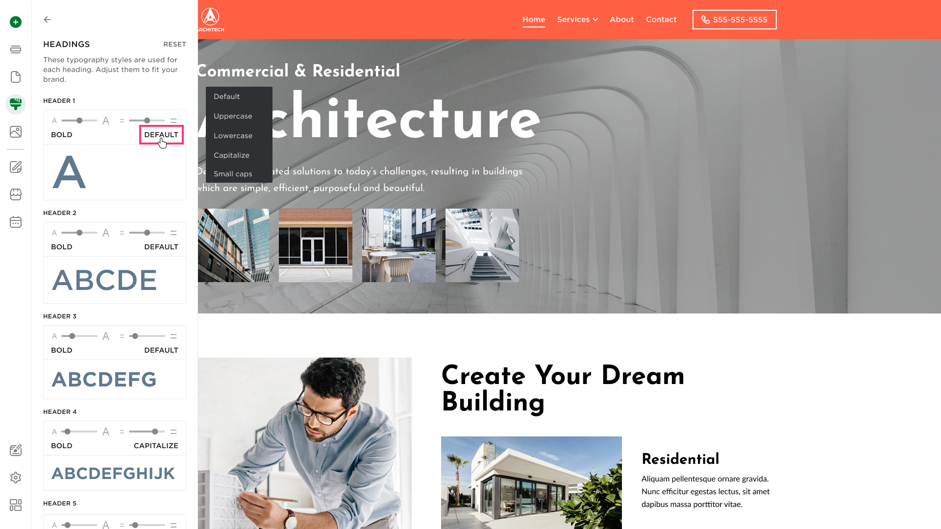 Customize heading size, line height, font weight, and case style for your website. All the changes will be applied immediately.