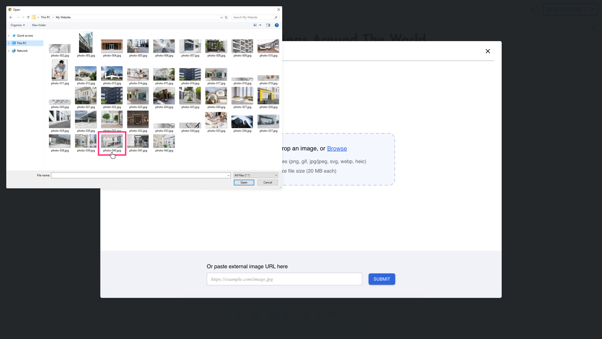 - In the Image Library, select Upload Photos: