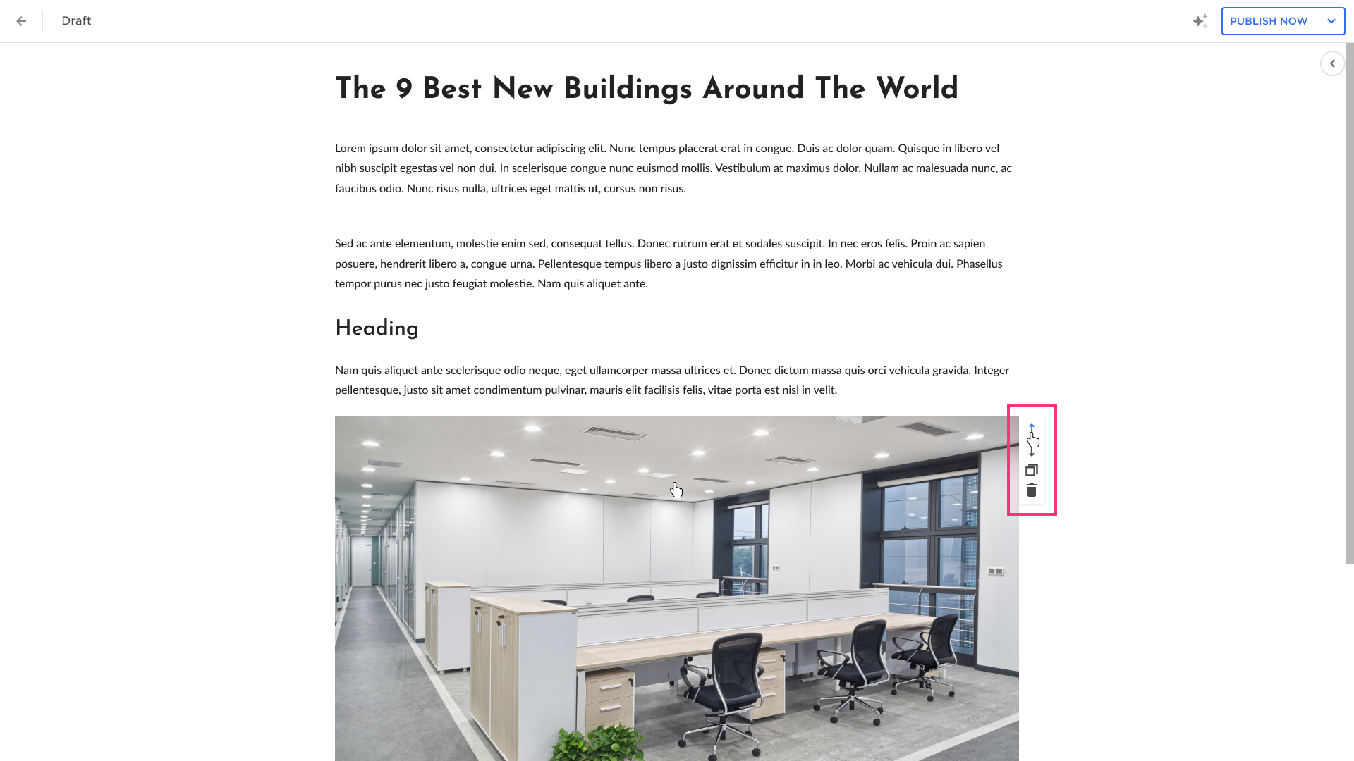 - Hover over the image to move, duplicate, or delete it: